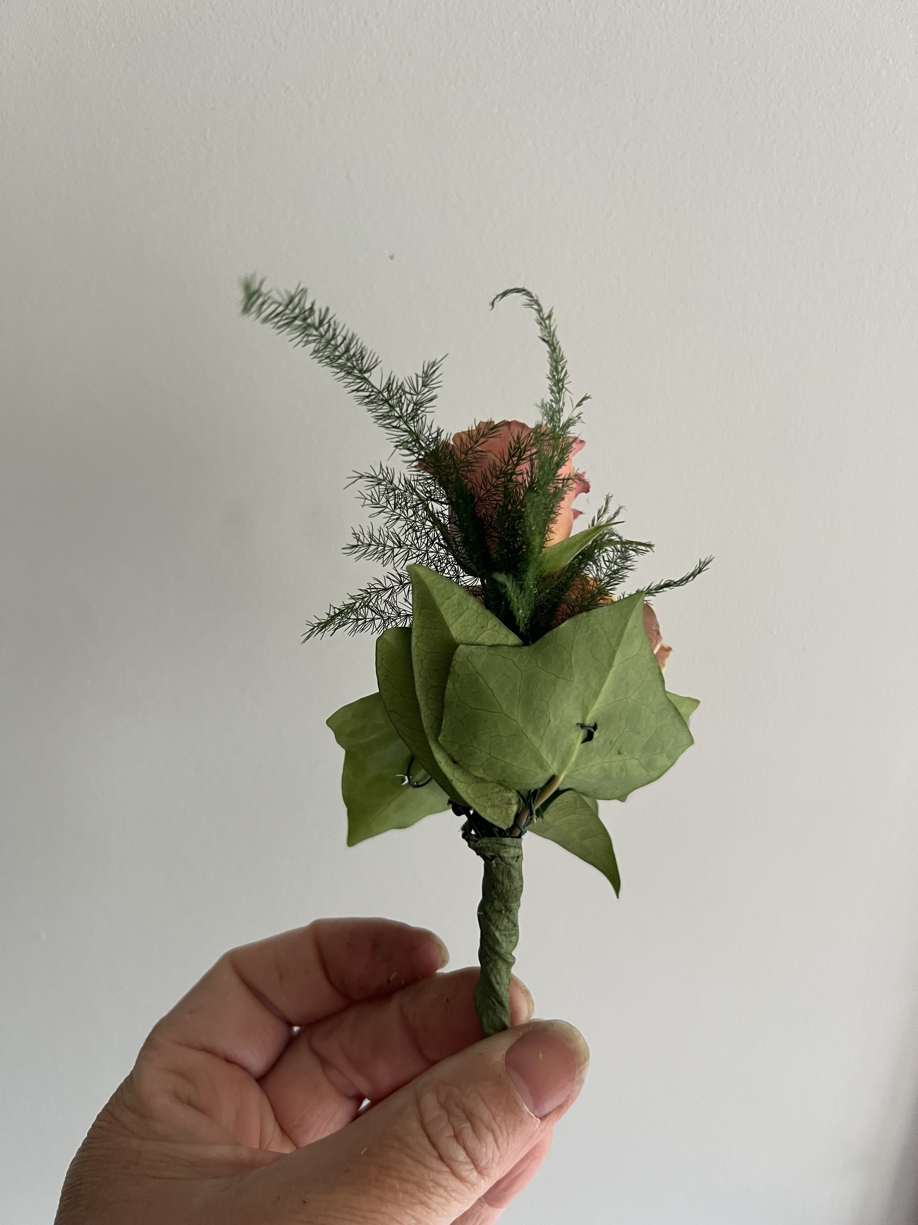 Hoi, Bij deze mijn damescorsage. Doordat hedera niet voorbij de varen komt zie je nog draad en de afwerking vind ik wat moeilijker dan bij de heren!! Groetjes Simone
