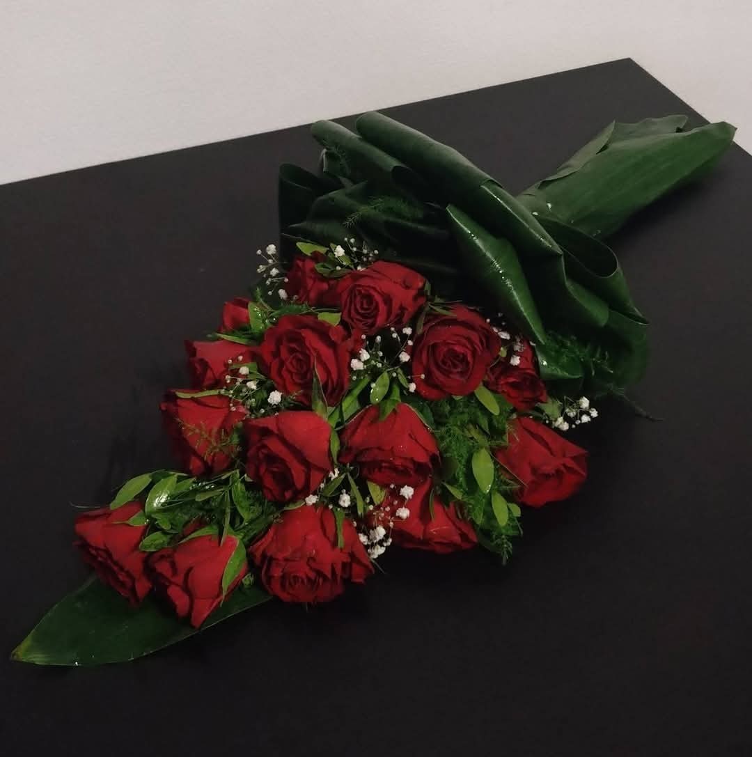 He dag Nicolle ik heb het liggend rouwboeket even geoefend met niet exact dezelfde materialen. Voor de afwerking van de stelen had ik geen aspidistrablad meer over. Ik had nochtans het aantal gekocht dat in de materialenlijst stond maar misschien meer gebruikt in het boeket zelf. Volgende keer werk ik de stelen mooi af met aspidistrablad maar ik wilde je mijn eerste proefversie toch al eventjes laten zien.Groetjes! Kristin