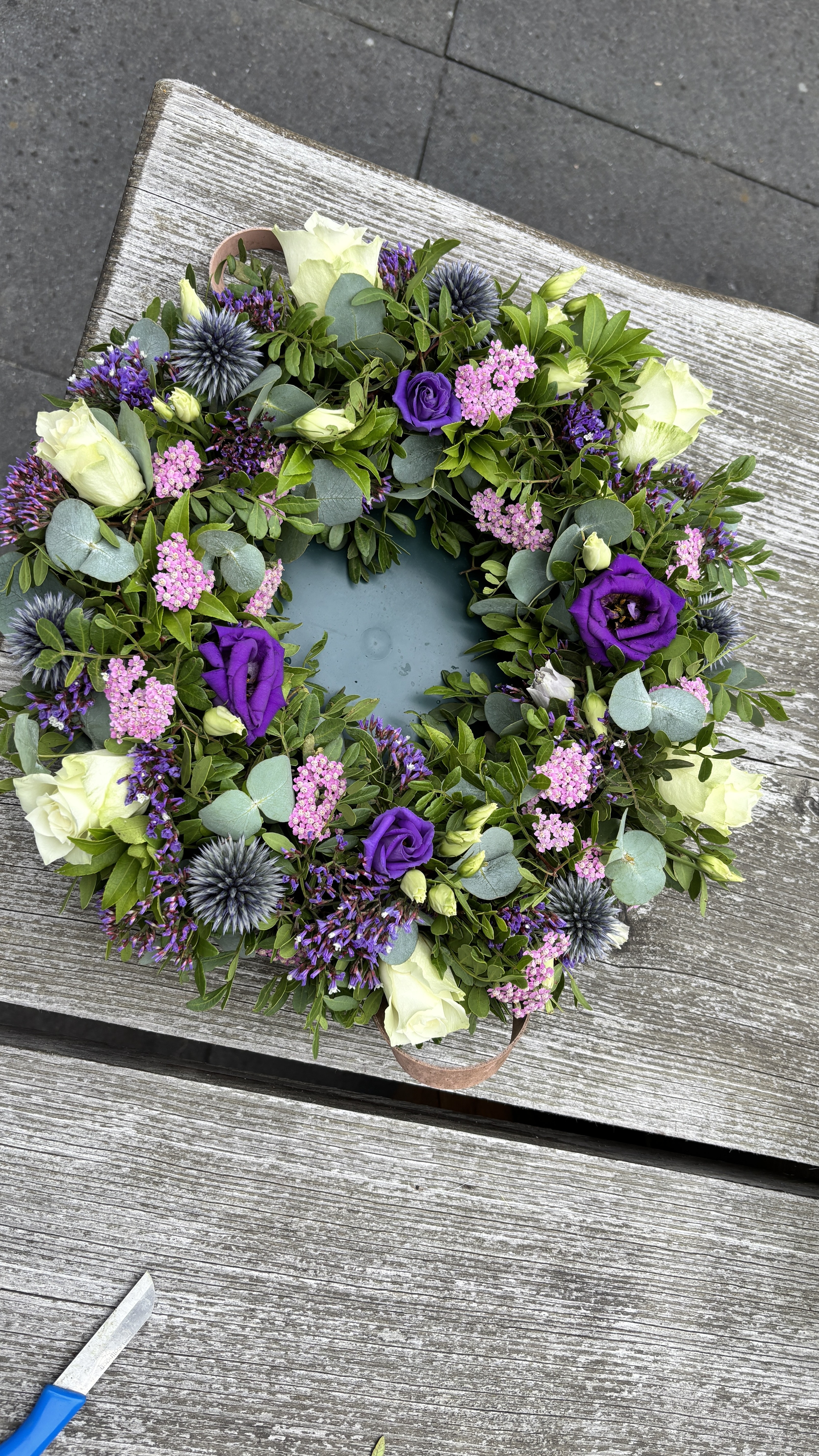 Hoi Nicolle, een krans gemaakt. De rozen waren groter dan ik dacht. Het was de eerste keer dus ben benieuwd wat je er van vindt.