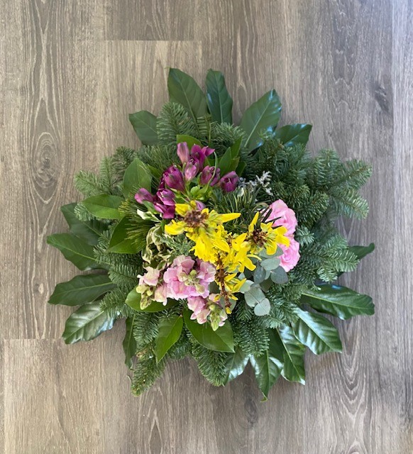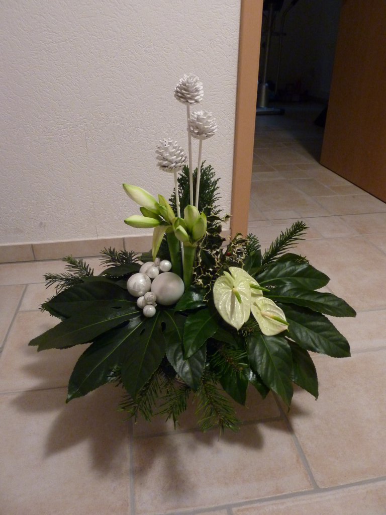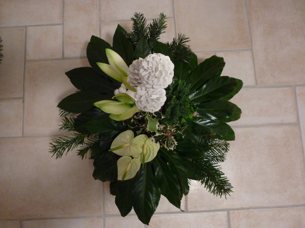 Hoi Rita, Dank je wel voor je foto. Je mag zeker wel tevreden zijn met arrangement. Hij is leuk geworden. 1 tipje: Als je het blauwspar iets meer door gewerkt had met kortere stukjes had je holle lijn meer aangesloten. Als je zo door gaat komt de ervaring van zelf. Fijne feestdagen geniet er van. Groetjes, Nicolle