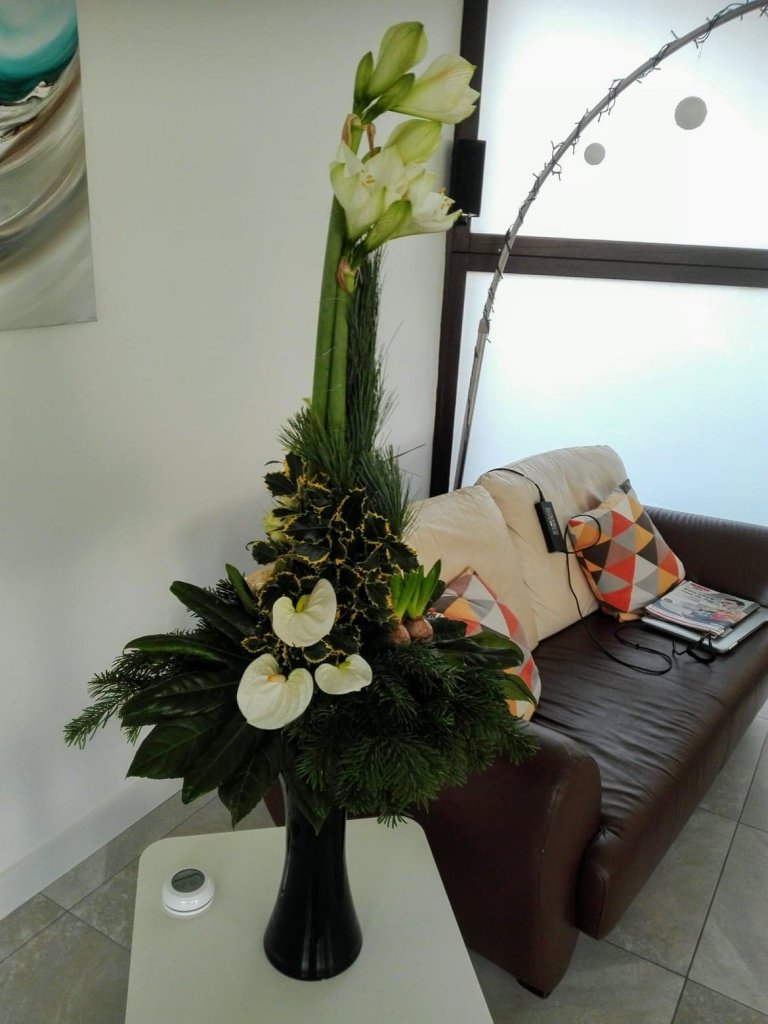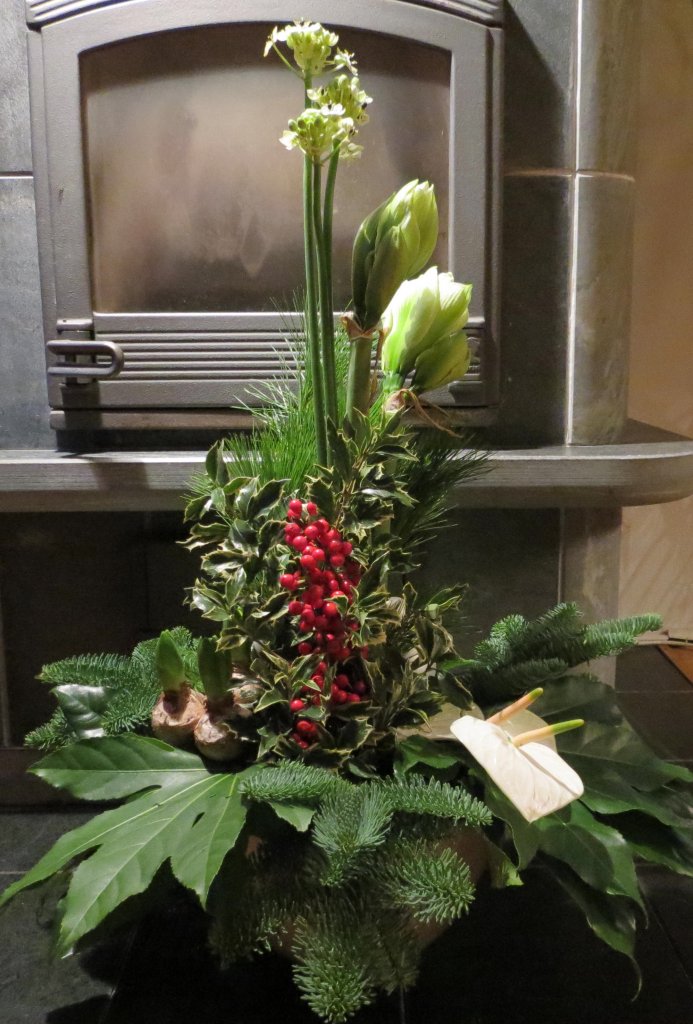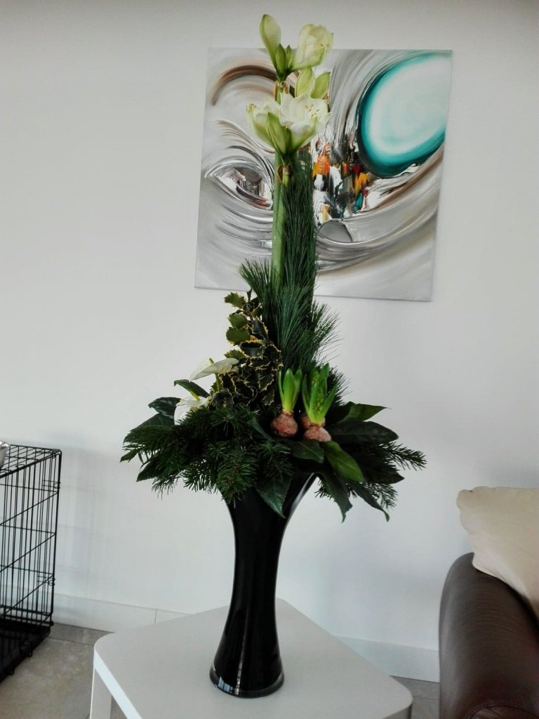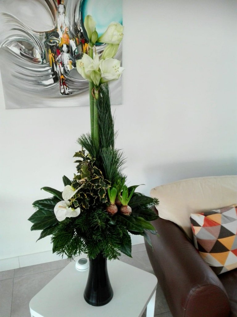 Hallo Nicolle, ! Ik heb je tip gevolgd om deze alzijdig lineaire kerstschikking te maken. Ik heb gekozen om de Amaryllis als hoogste bloem te gebruiken. Ben benieuwd wat je ervan vindt. Groetjes, Patricia