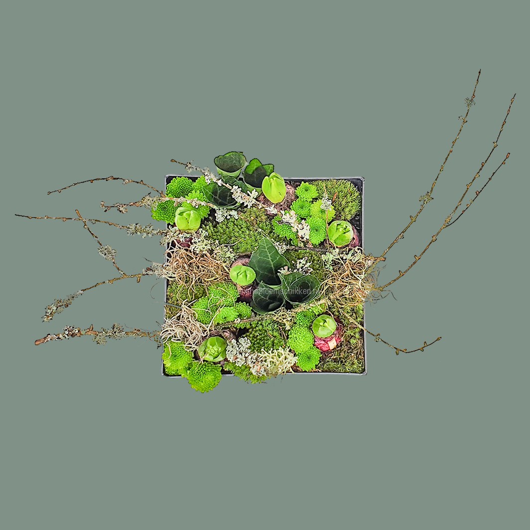 Helaas geen Baard van Abraham-mos kunnen kopen, wel gewoon mos. Ik ben benieuwd of de hyacintjes uitkomen. Ik heb drie kleuren gekozen, want de tafelschikking is een cadeautje. De bemoste takken kon ik zo oprapen buiten. Er is net storm geweest. Ik vind ze leuk, die takken. En leuk om dit arrangementje te maken. Heb je nog tips? Alvast bedankt. Groetjes Vlijtig liesje