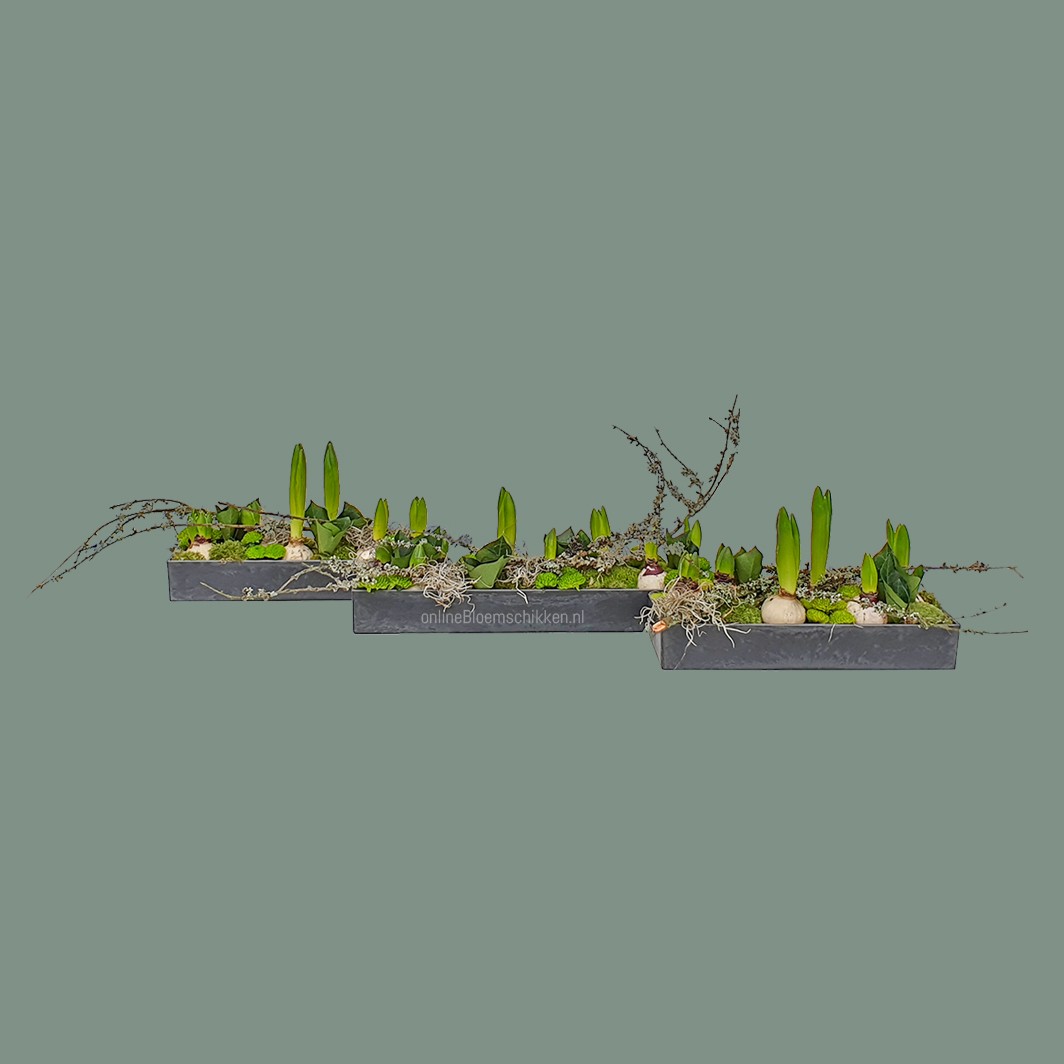 Hyacinten zijn een leuke manier om het voorjaar alvast in huis te halen. Gecombineerd met wat bloemen- en bijmaterialen kan je een leuk tafelarrangement maken, dat langer kan blijven staan en ook nog eens heerlijk ruikt.