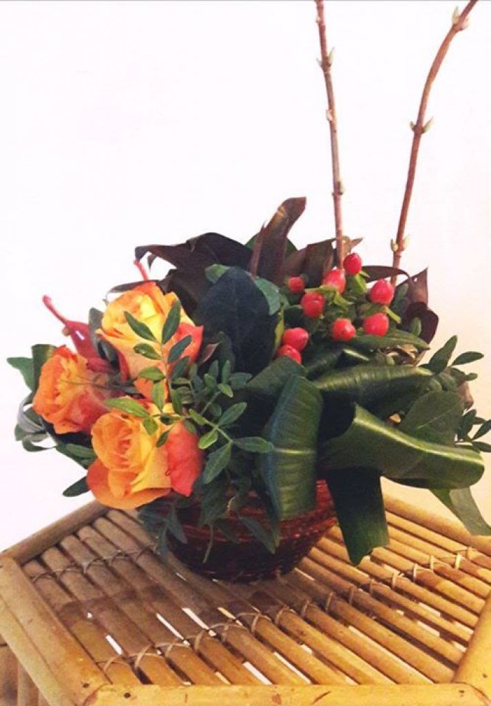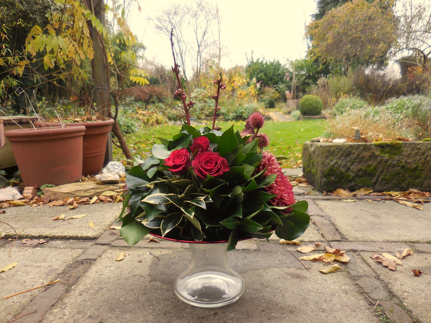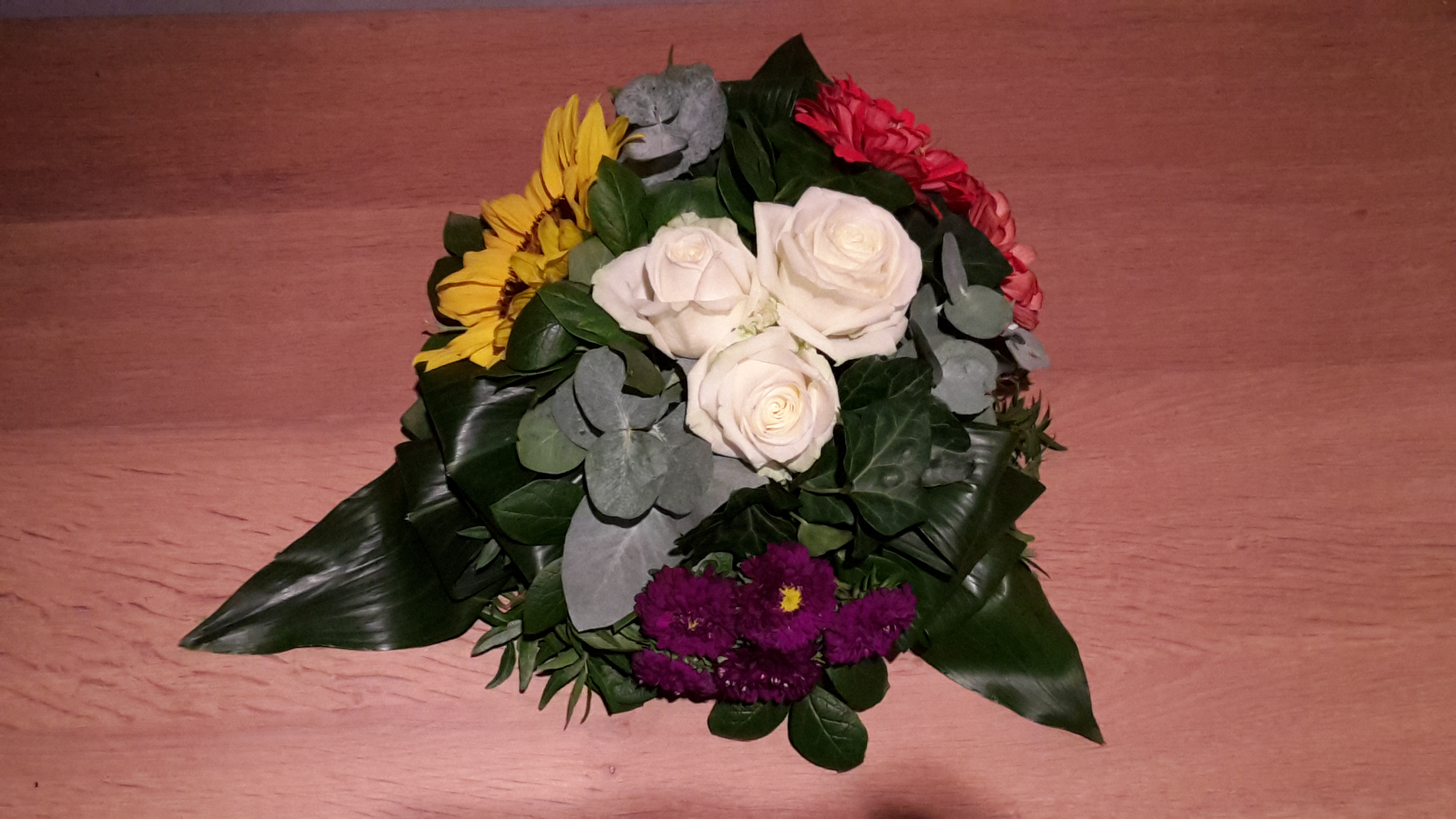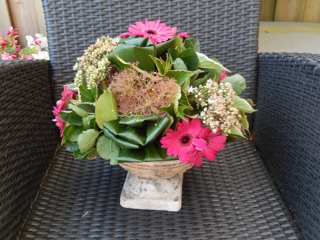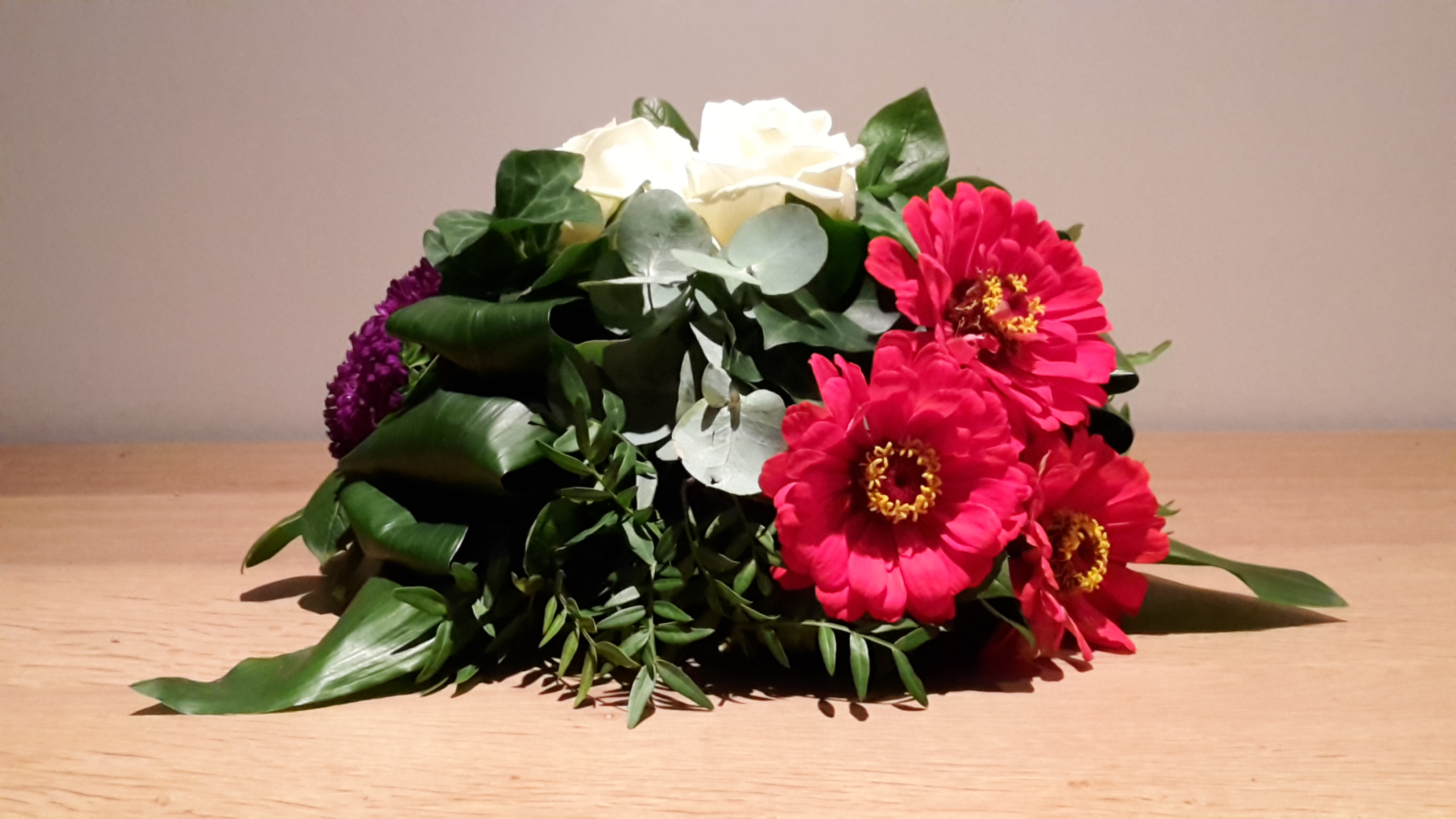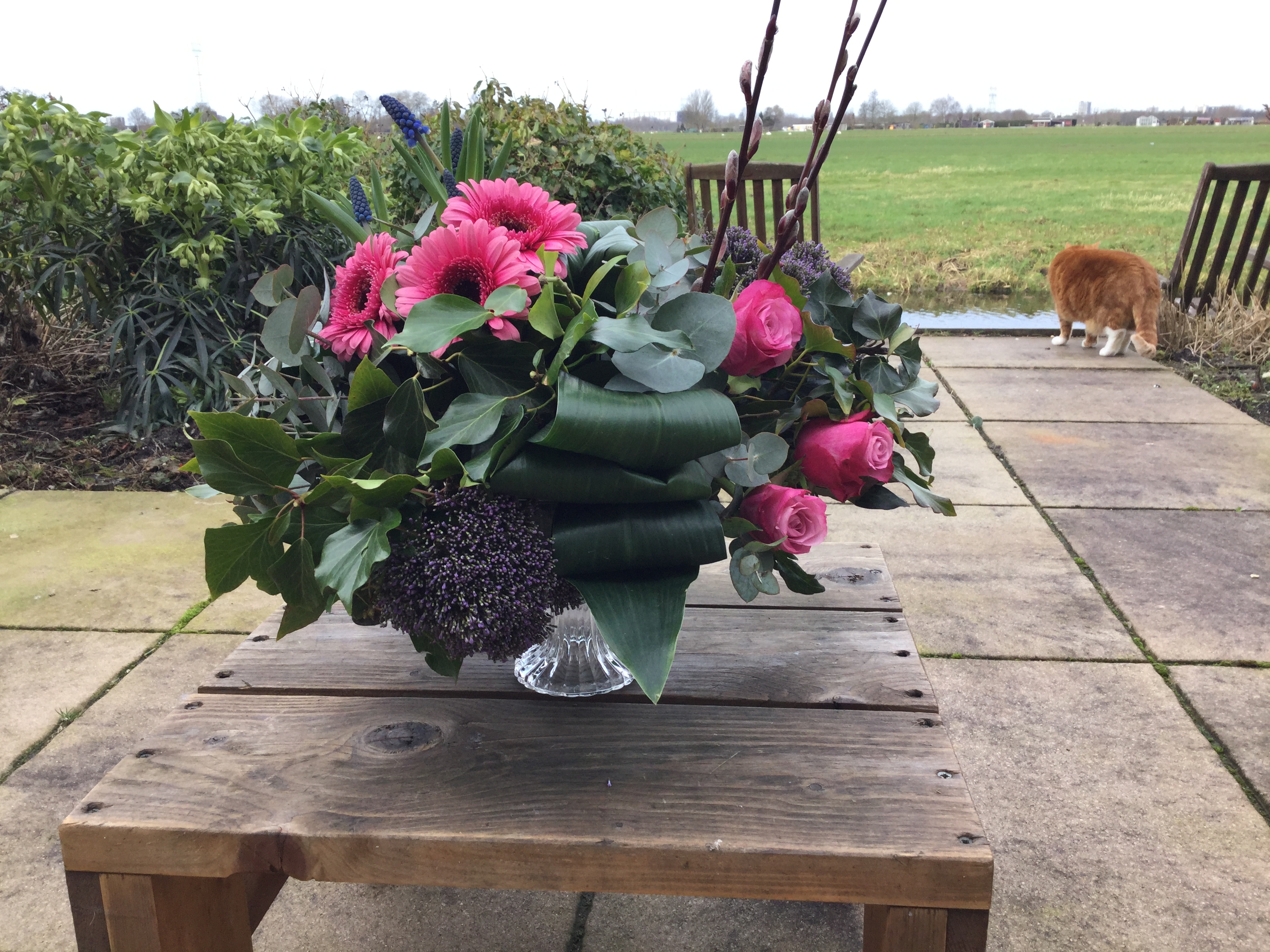 De meeste cursisten zijn erg enthousiast over dit arrangement, omdat het weer eens iets anders is dan de gemengde biedermeier en omdat de materialen mooi uitkomen. Zo kan je dus wel goed bloembollen gebruiken in het voorjaar.