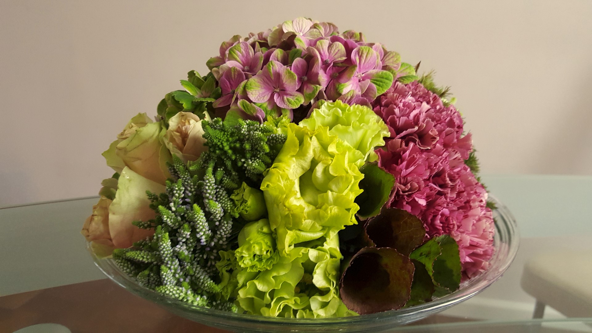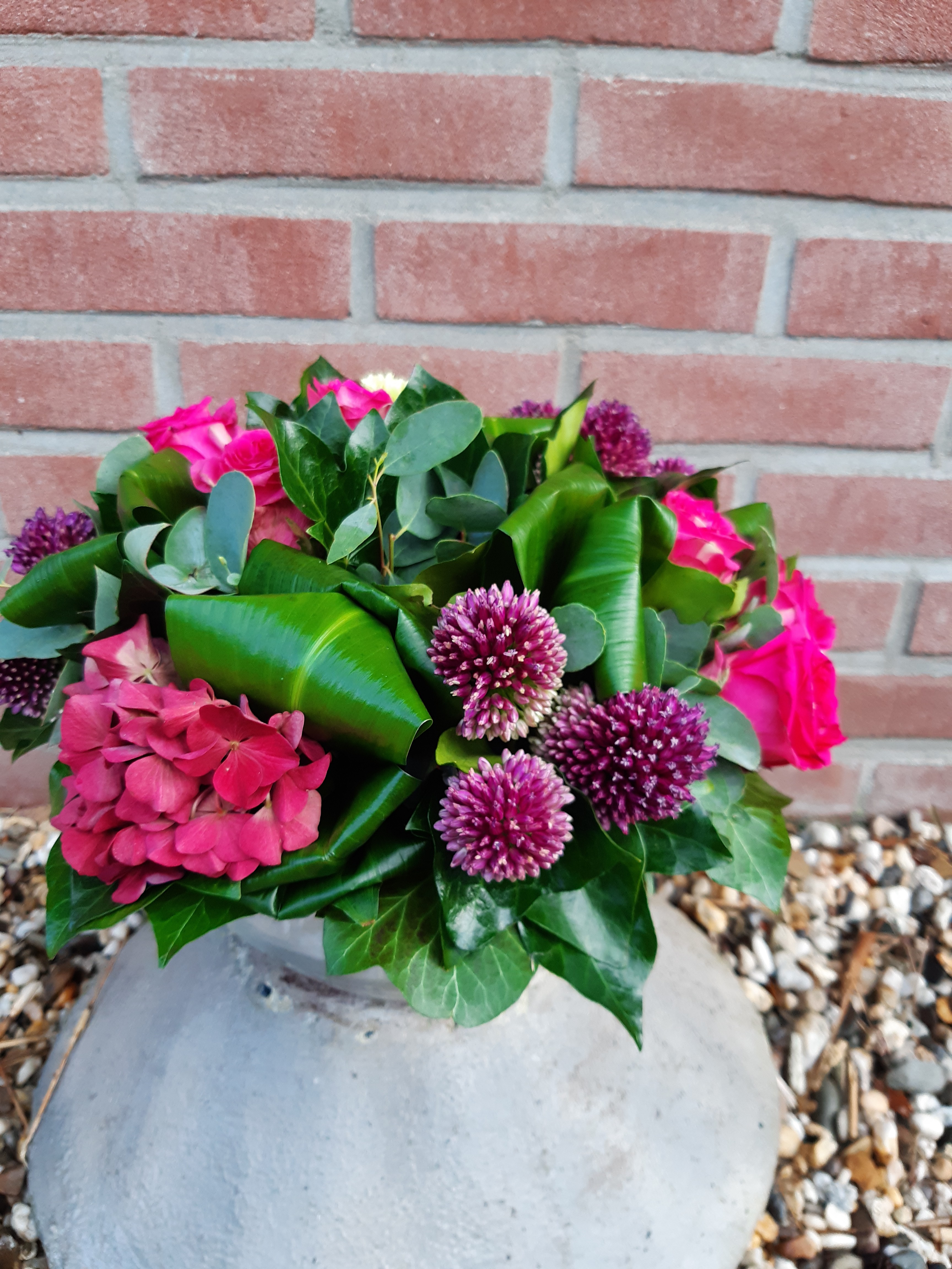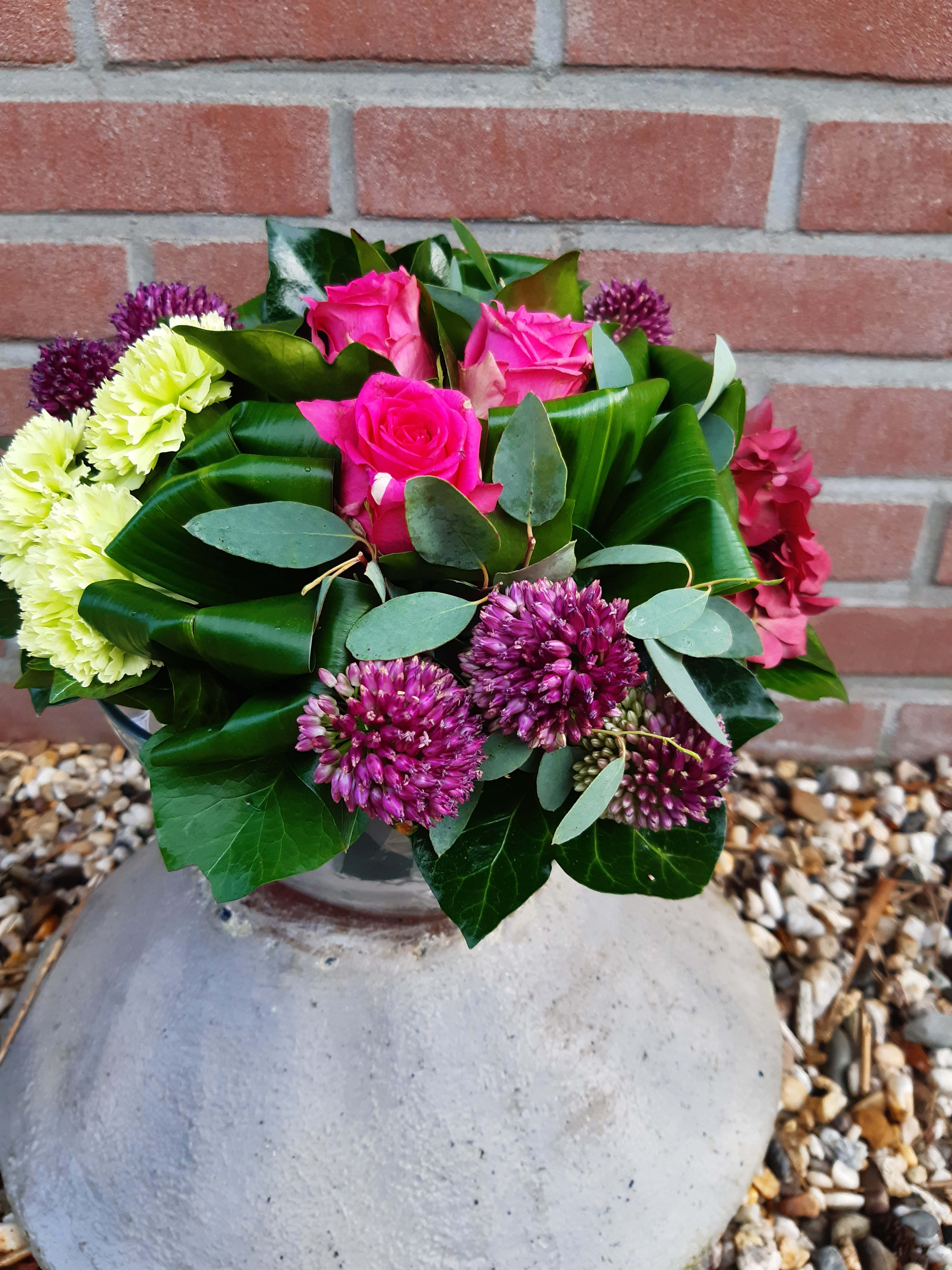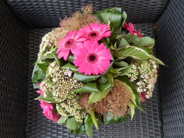 Hoi Rita, Wat heb je er een leuke schaal voor gevonden. Met deze schaal komt je biedermeier in groepen nog mooier uit. Hij is keurig rond en mooi verdeeld! Misschien dat je de 2 gerbera mini iets meer van elkaar af had kunnen steken, ze zitten wat krap. Dat is ook maar een heeeel klein puntje. Jij zal dat nu ook wel zelf hebben dat hoe perfecter je bloemwerk wordt je steeds kritischer wordt. Groetjes, Nicolle