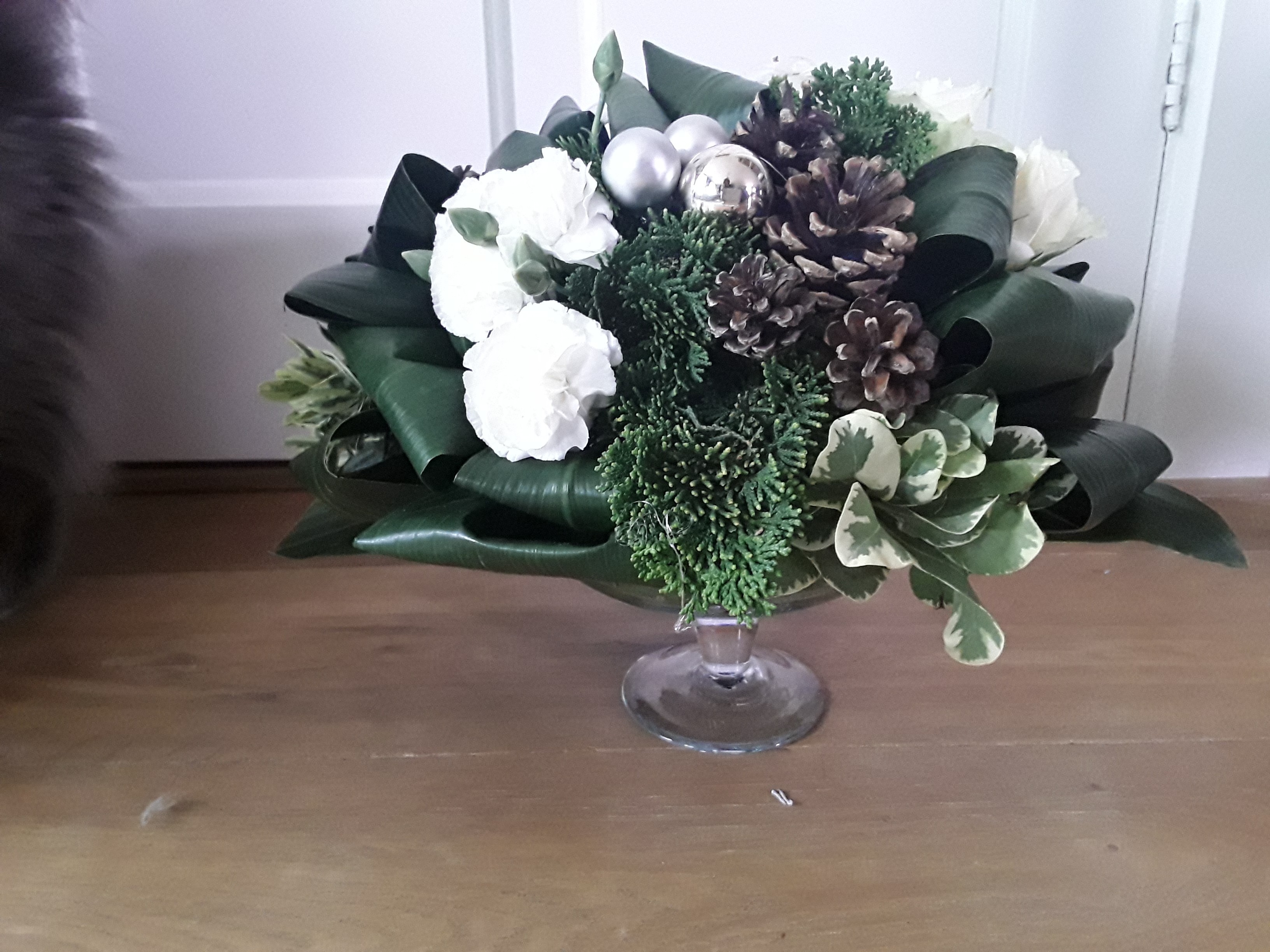 Hier mijn tafelarrangement in kerststijl, ik vind het erg leuk om te maken