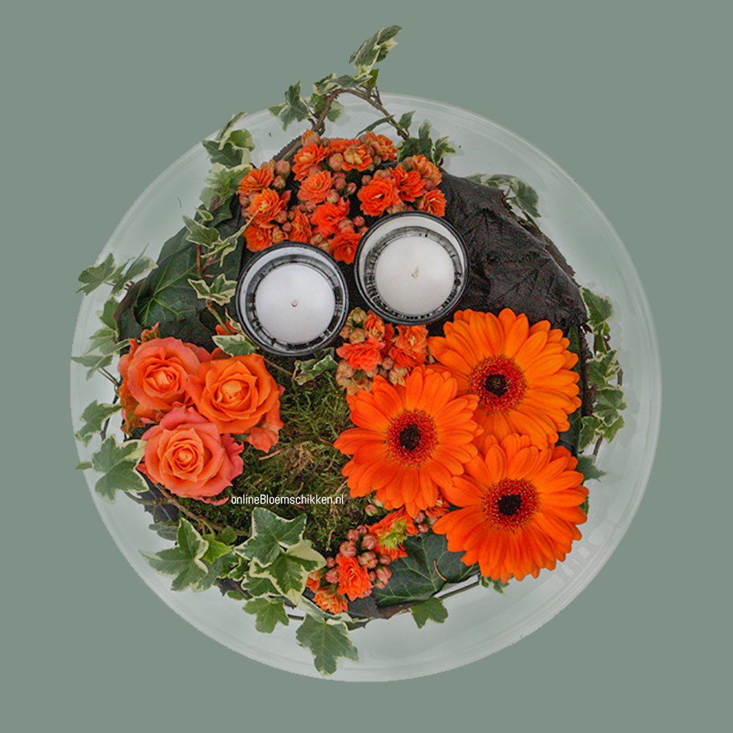 Eigenlijk kan je met het taartje niet zoveel fout doen met de verdeling, omdat daar geen regels voor zijn en heel veel mogelijkheden. Dit is wat we noemen 'vrij stijl'. Wel is het zo dat als je verdergaat in je opleiding je regeltjes kan gebruiken die je bij andere arrangementen leert. Zelf zou ik de Gerbera mini ook aan de bovenkant gebruiken. Zo komt het onnatuurlijk over, want de Gerbera groeit omhoog. Ik hoop dat je hier iets aan hebt.