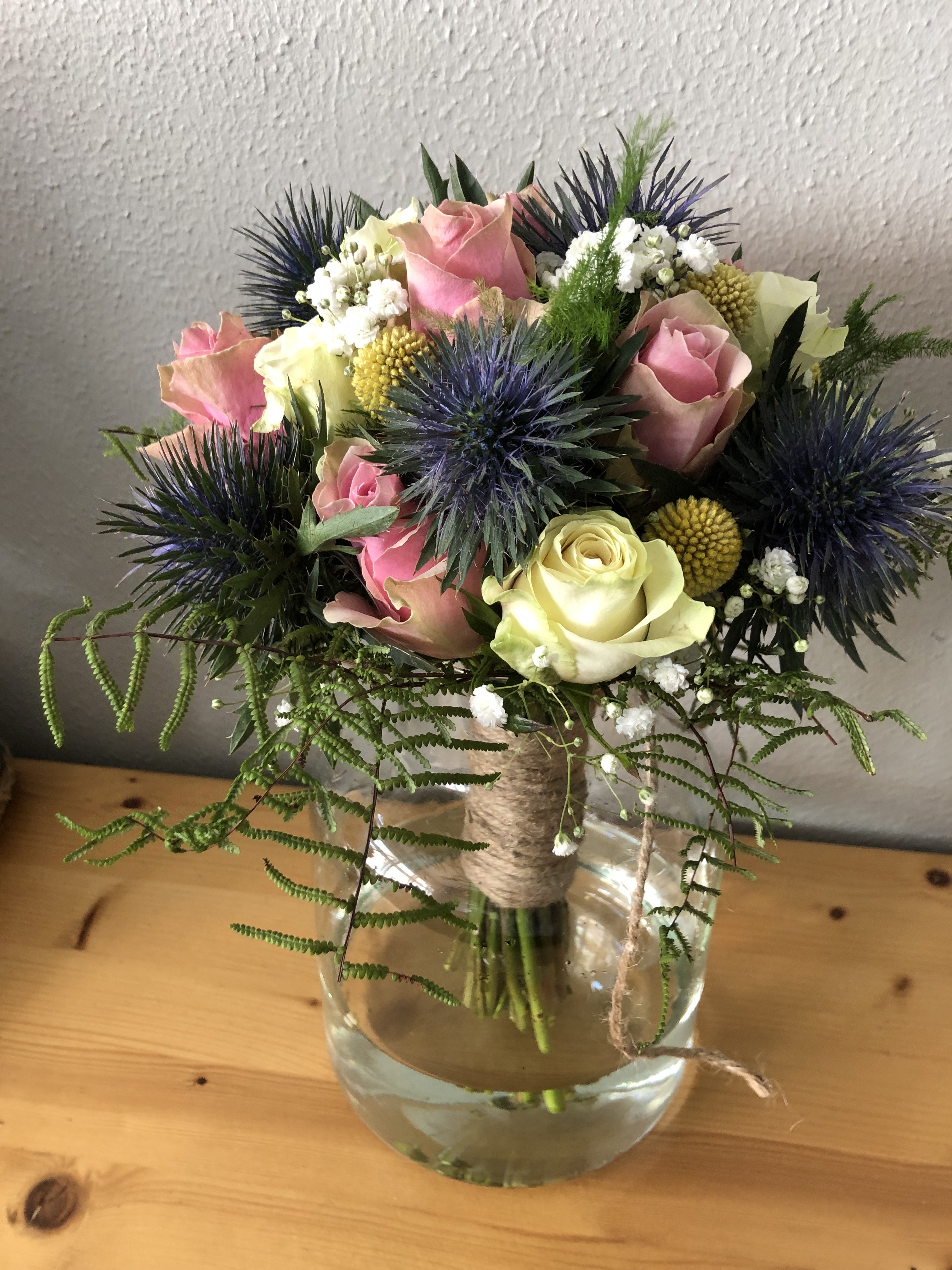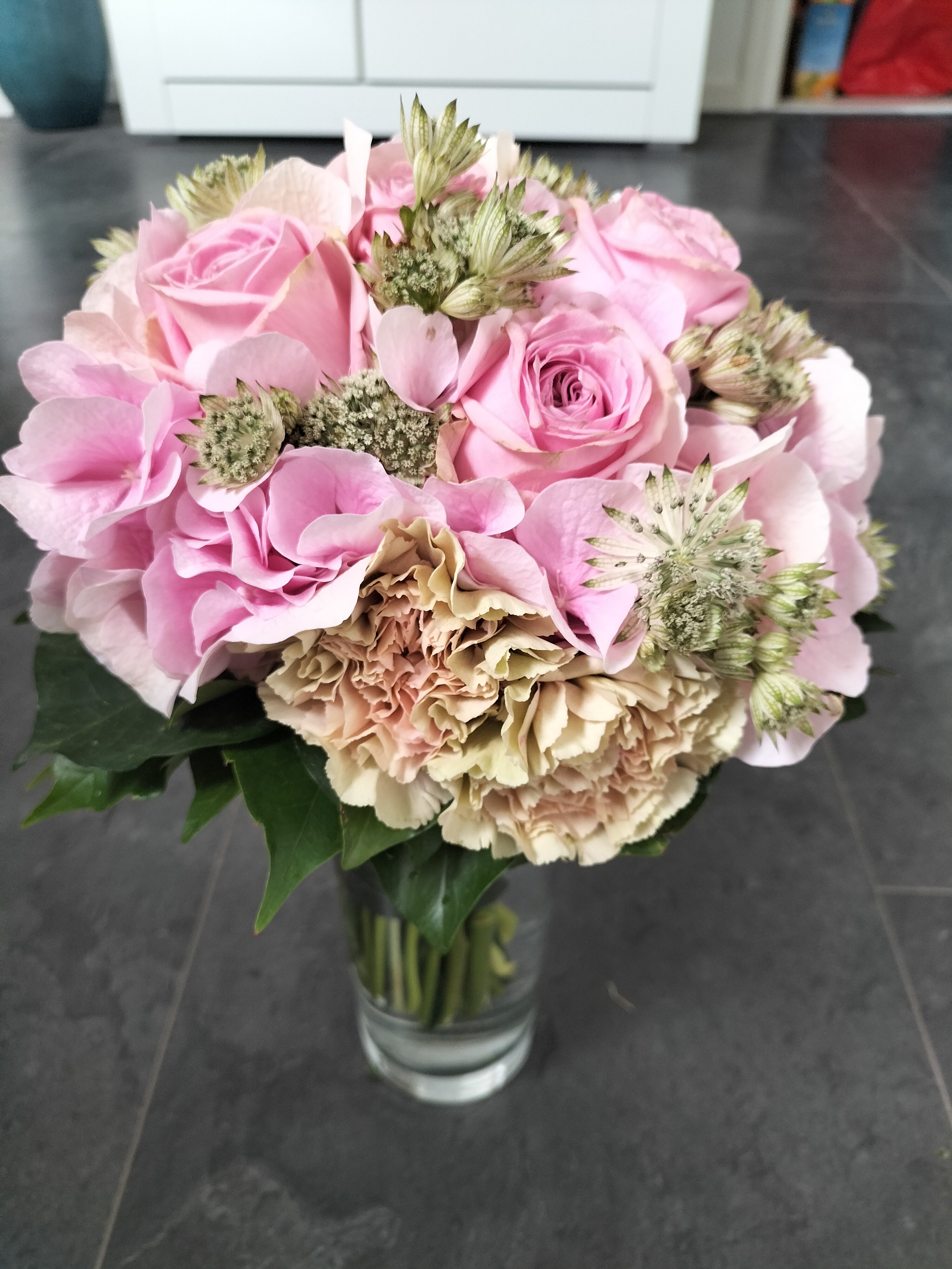 Hoi Nancy, Wat is je boeketje een plaatje! Keurig rond en prachtige zachte tinten. Dit boeket kan zo worden opgehaald door de bruidegom. Heb je al meer ervaring? Groetjes, Nicolle