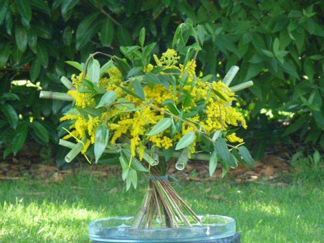 Hoi Nicolle, dit is mijn versie van het boeket met zelfgemaakt frame. Hiervoor heb ik van Polygonum stokken een frame gemaakt en vastgezet met tyraps. De vulling komt van alles wat langs de weg groeit.... Groetjes, Rita