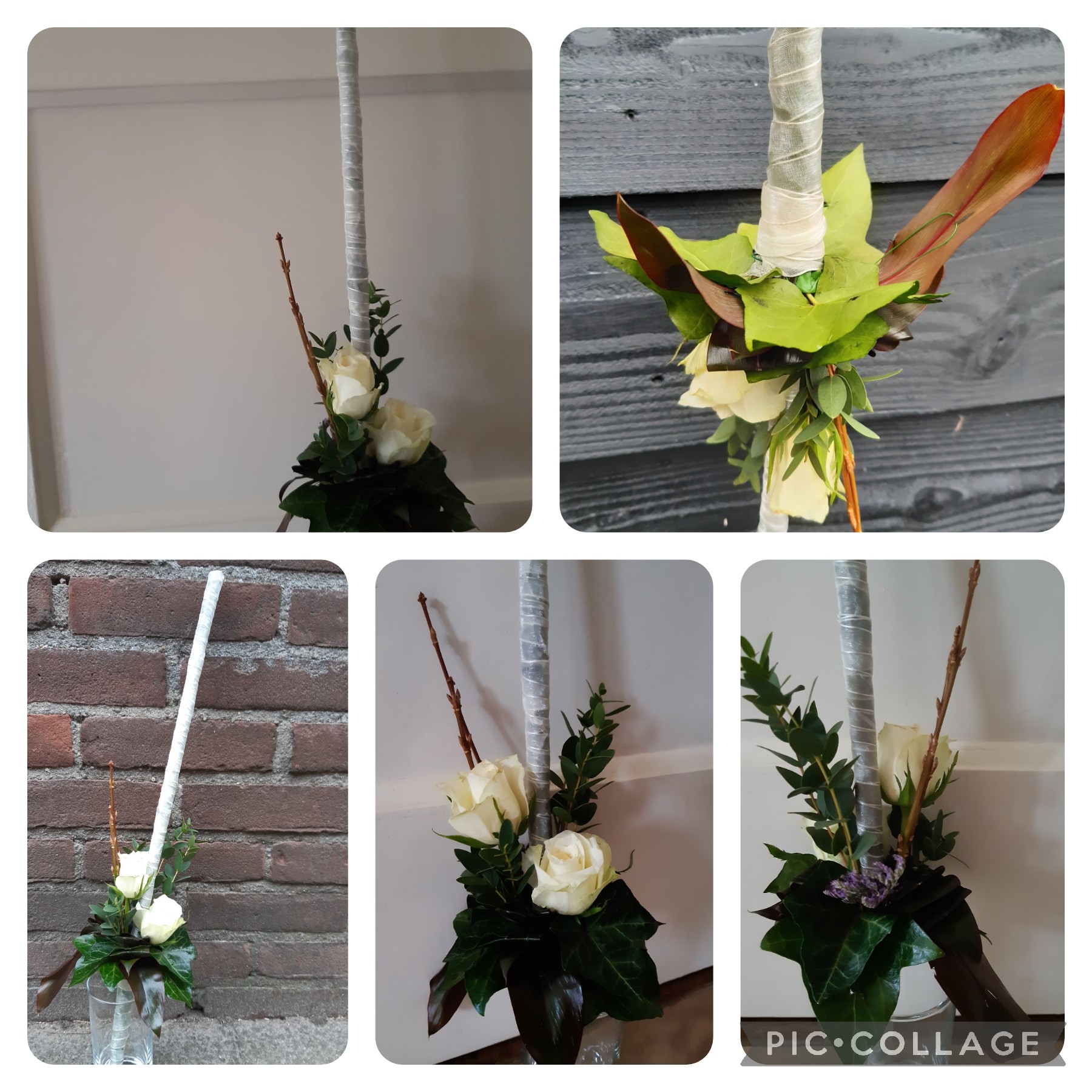 Hoi Leone, Leuk dat je zo creatief bent met je materialen. Je Jonkerstafje is goed geworden. Hou alleen de regel van maximaal de helft van de hoogte horizontaal. Goed van je dat je met je corsage's aan de gang gaat. Je hebt er niet zoveel voor nodig , maar is ook goed om er sneller in te worden. Ga lekker zo door. Groetjes, Nicolle