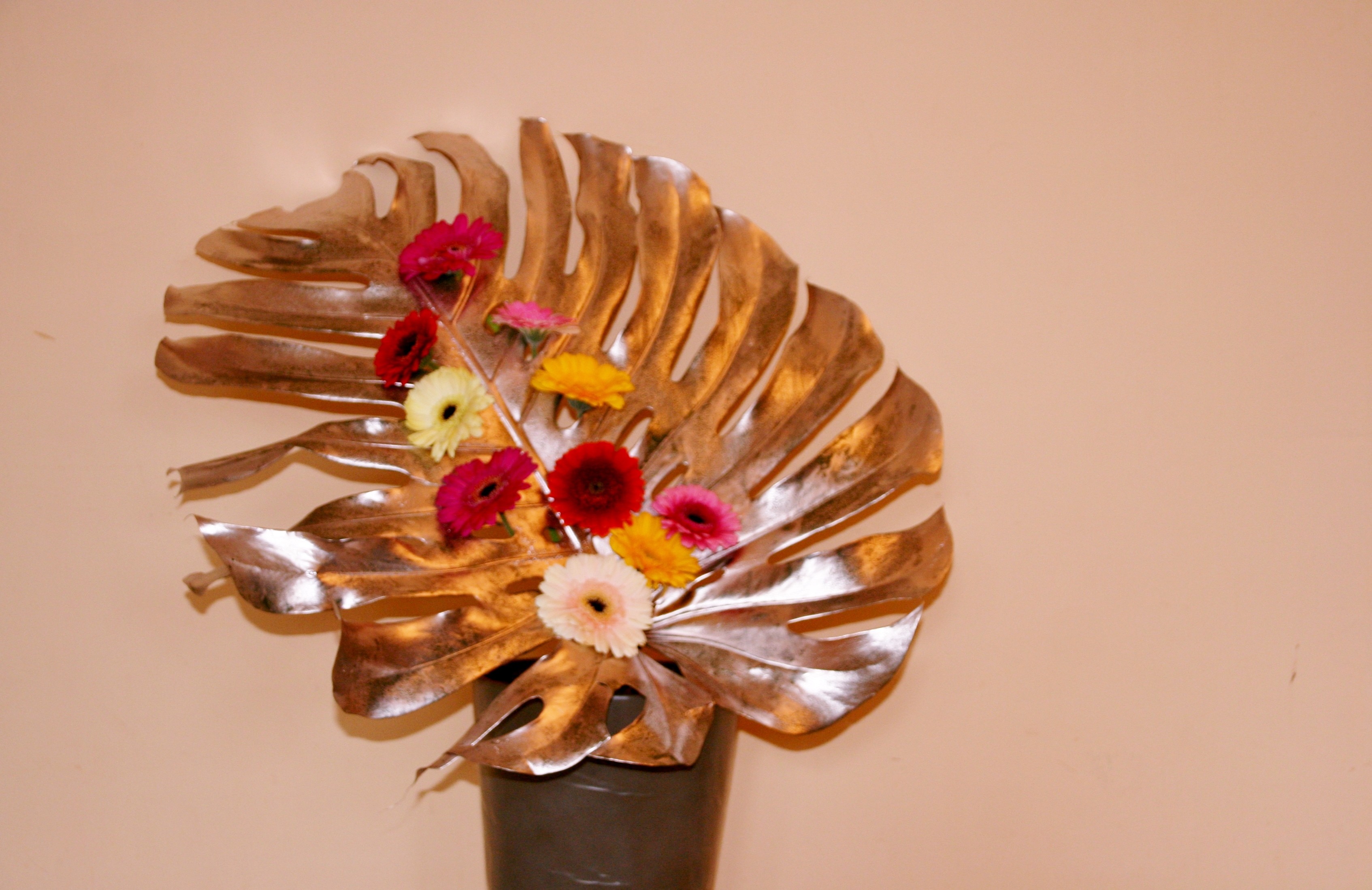 Hoi Nicolle, Deze is ook prachtig! Die ga ik zeker een keer maken. Echt geweldig, al die bloemen. Misschien heb ik al een mooi metallic Monstera-blad als achtergrond, waarvan ik niet goed weet hoe ik het moet verwerken. Om Pippi Langkous te citeren: "Ik heb het nog nooit gedaan, dus ik denk dat ik het wel kan!" Spannend..... Misschien is dit wel de feestelijke liturgische schikking waar ik naar op zoek ben? Gauw die schikking maken en dan weer door met mijn vakopleiding.... En nee, de bloemen zoals op mijn foto, zó wil ik het dus NIET. Ik had snel een foto nodig en had weinig bloemen in huis.. . Grtjs Vlijtig liesje