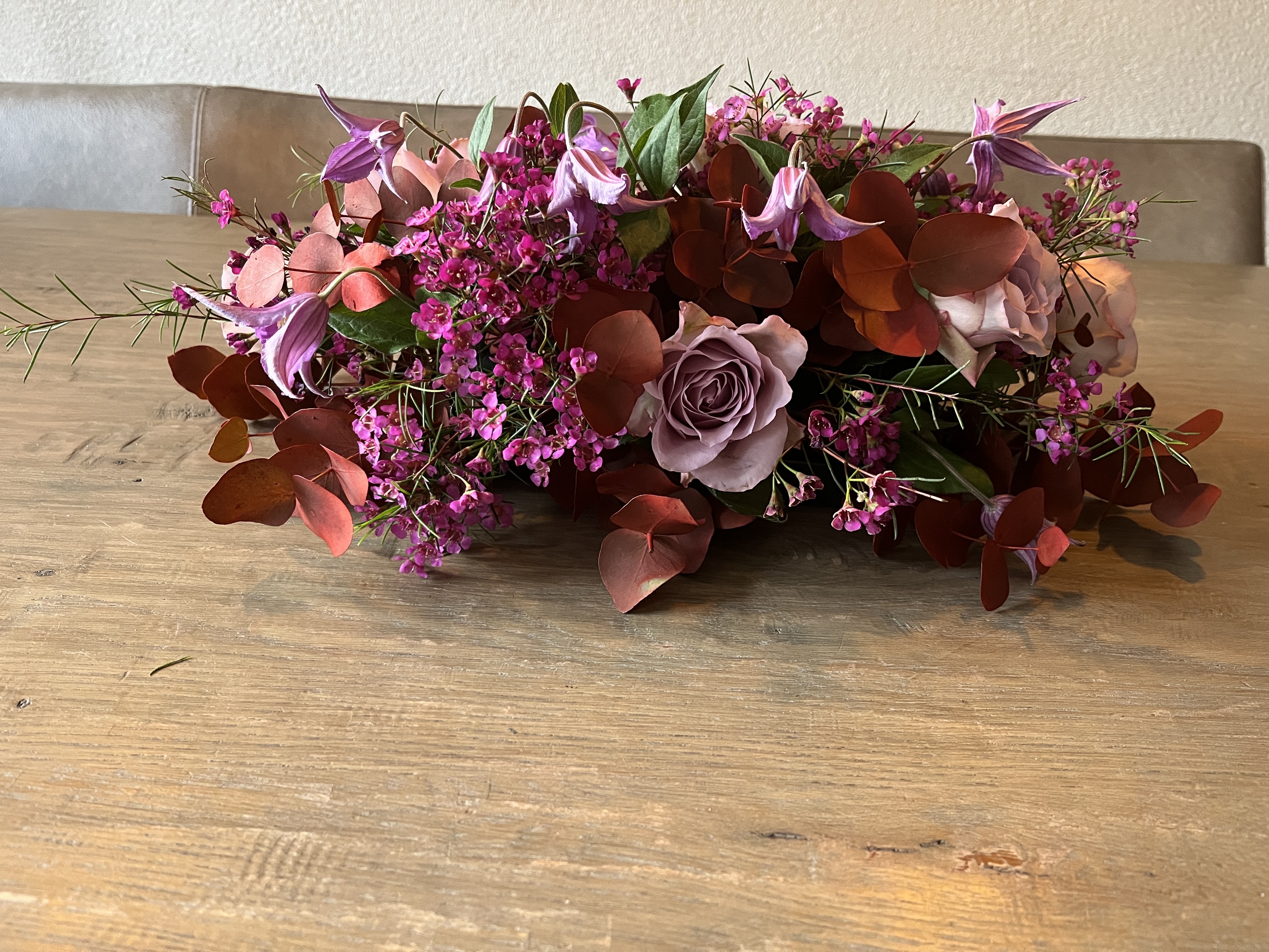 Hallo Nicolle, Heb het klassieke tafelstuk gemaakt met eucalyptusblad. Werkt wat rommelig vind ik zelf.