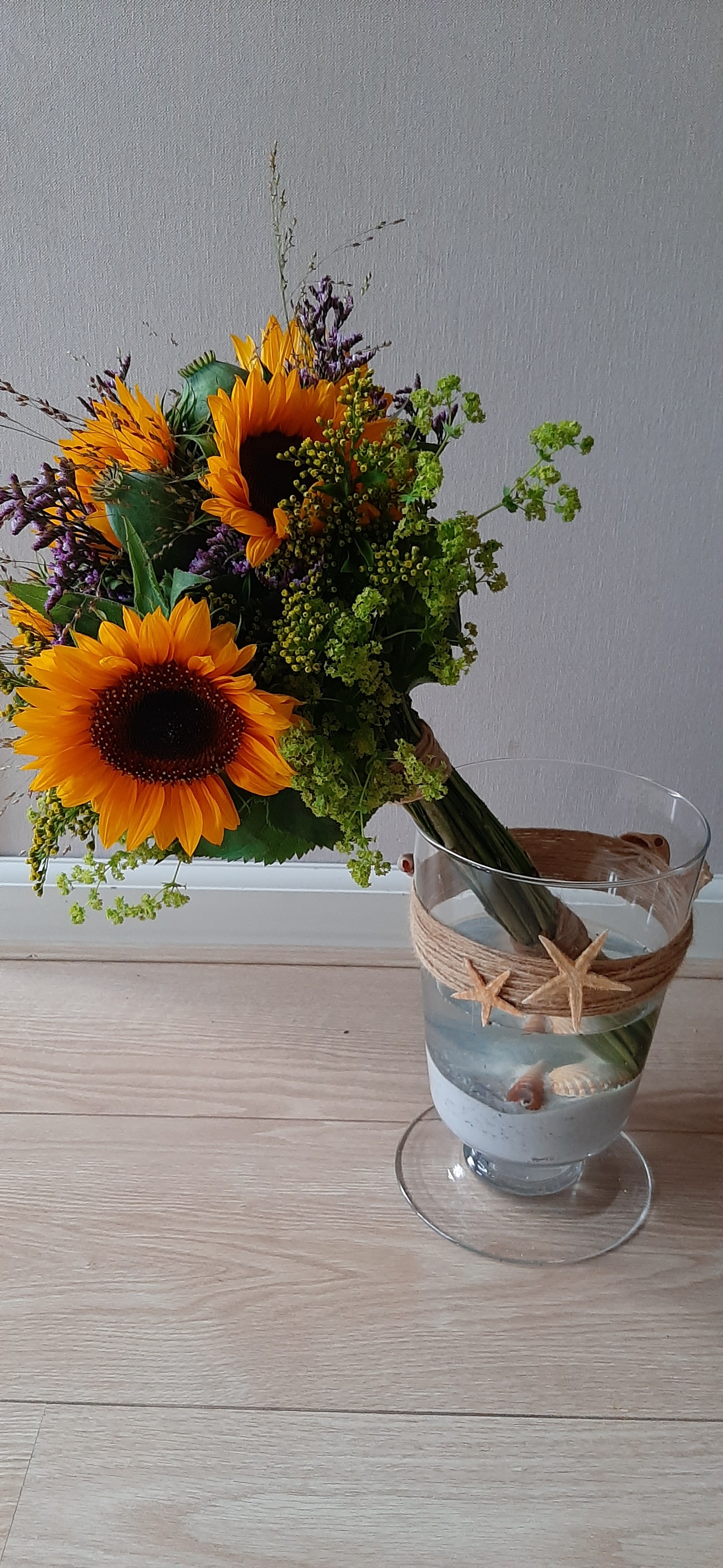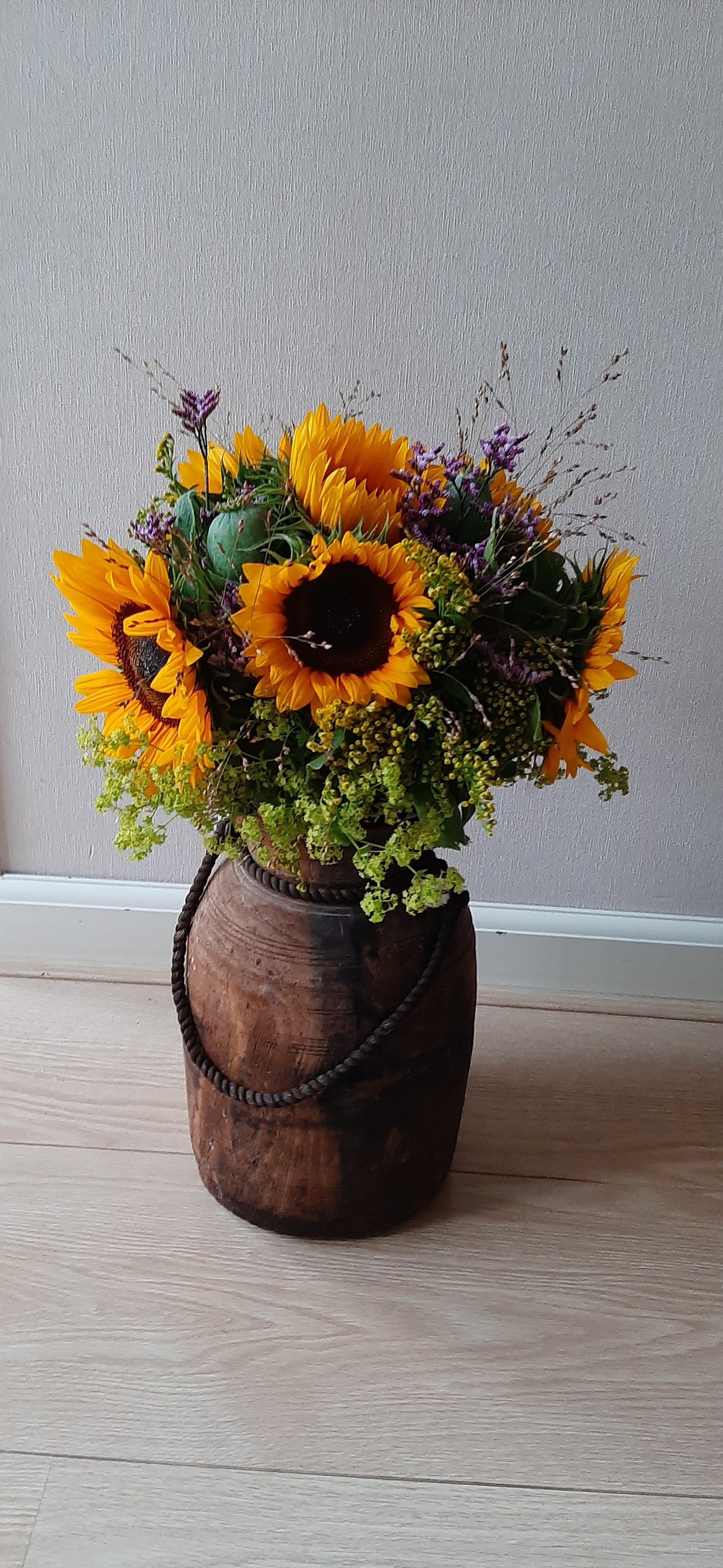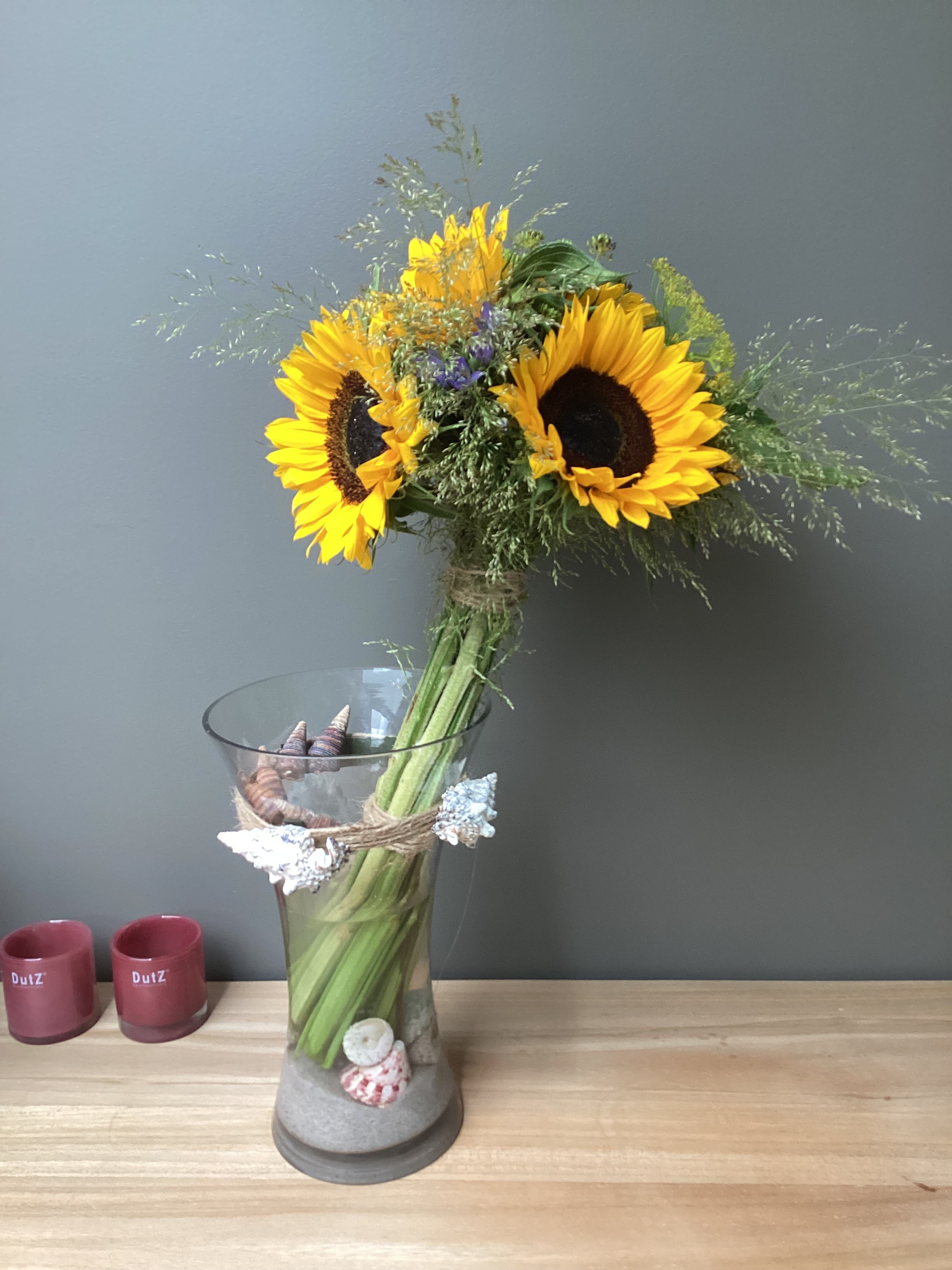 Hoi Karin, Ook dit boeket is prachtig geworden net als je zonnebloemen (Hellianthus) met hoefblad. Iets later kan je ook nog die vaas met zonnebloemen en pompoenen maken. Die ga je ook vast leuk vinden en die blijft ook heel lang staan. Geniet van de zomer. Groetjes, Nicolle