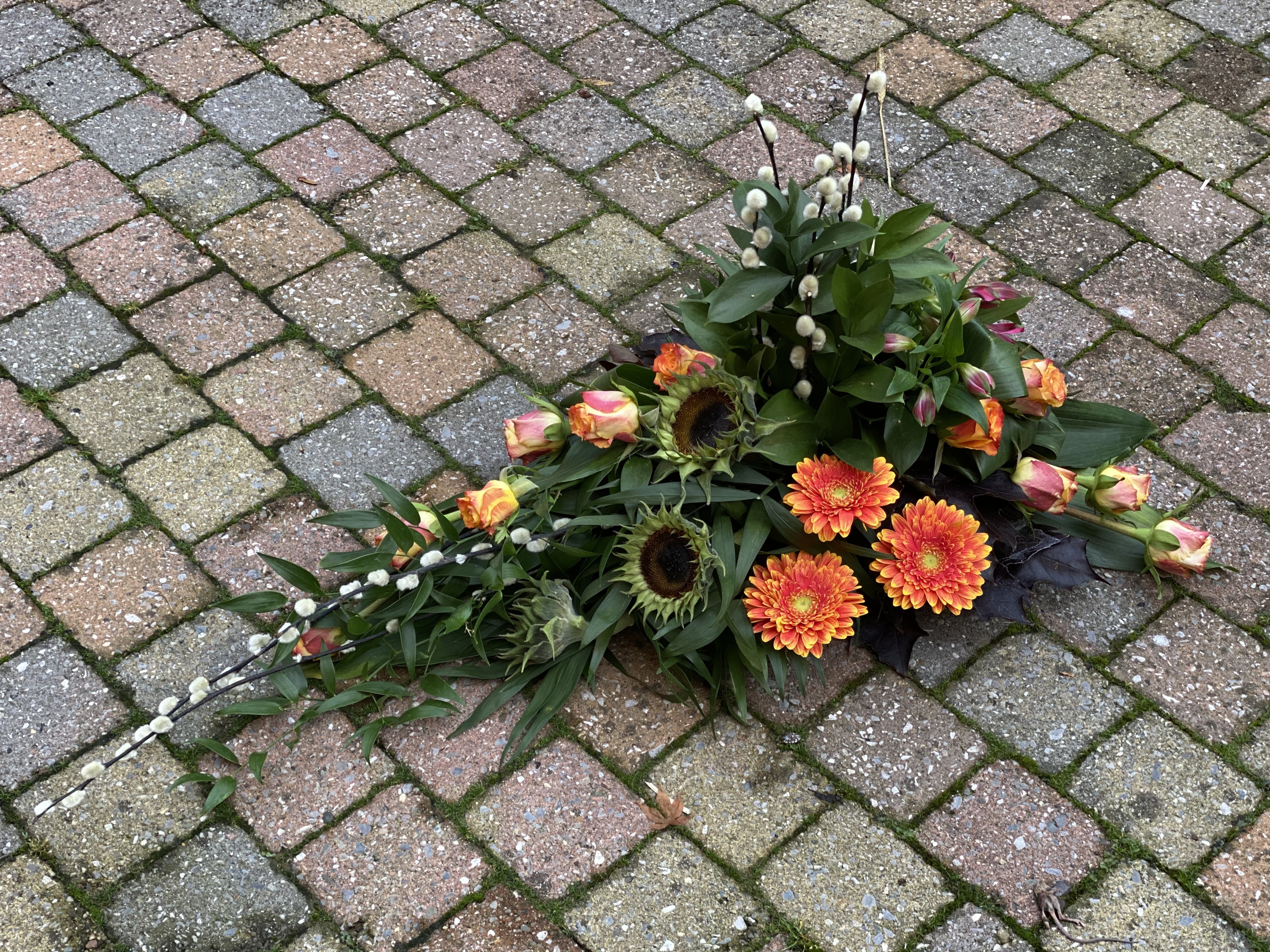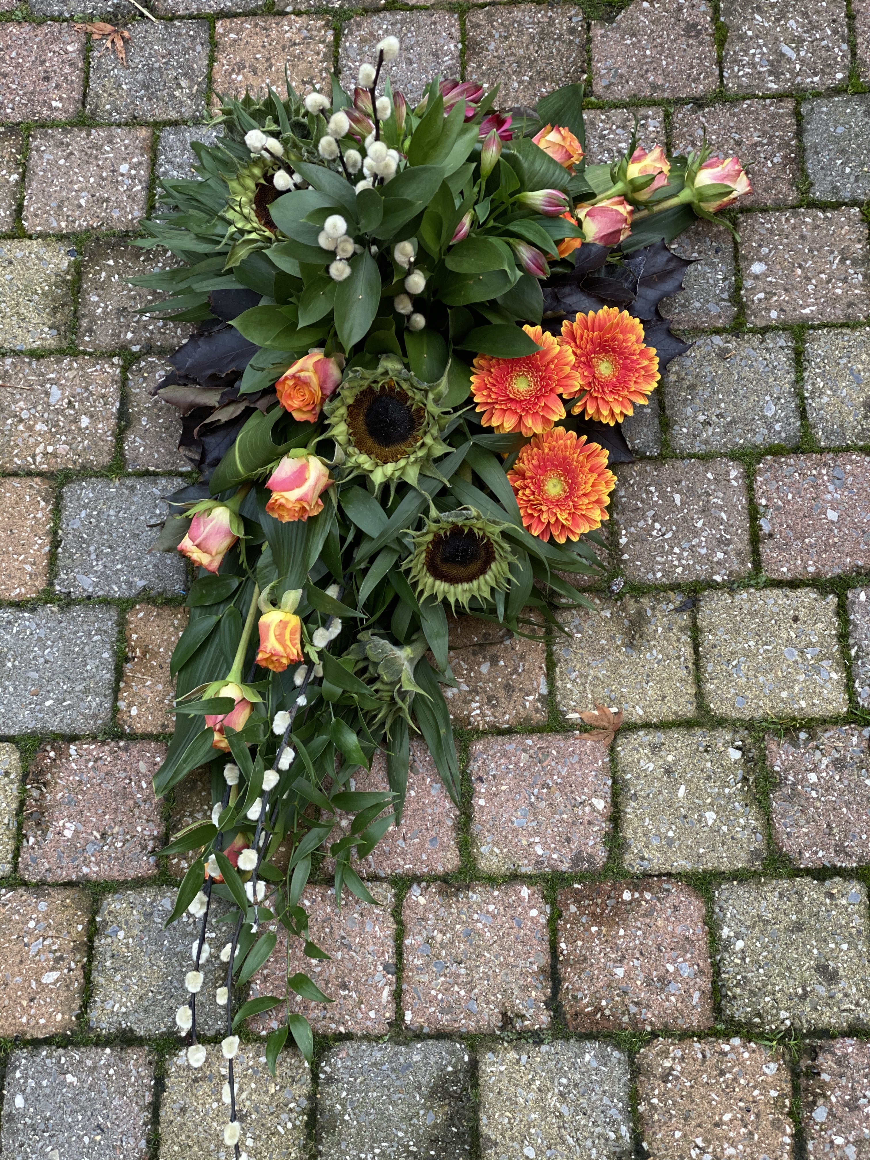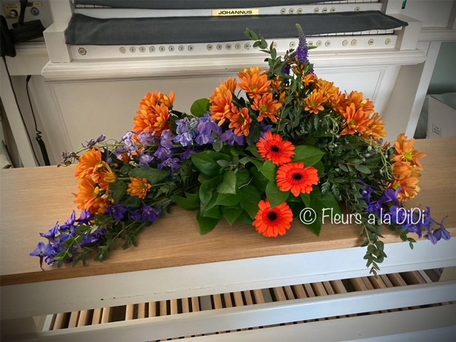 Dit is een groot en er mooi stuk geworden! Veel rustiger dan je eerste lineaire rouwstuk. Dat komt gedeeltelijk ook door de soorten bloemen die je hebt uitgekozen.