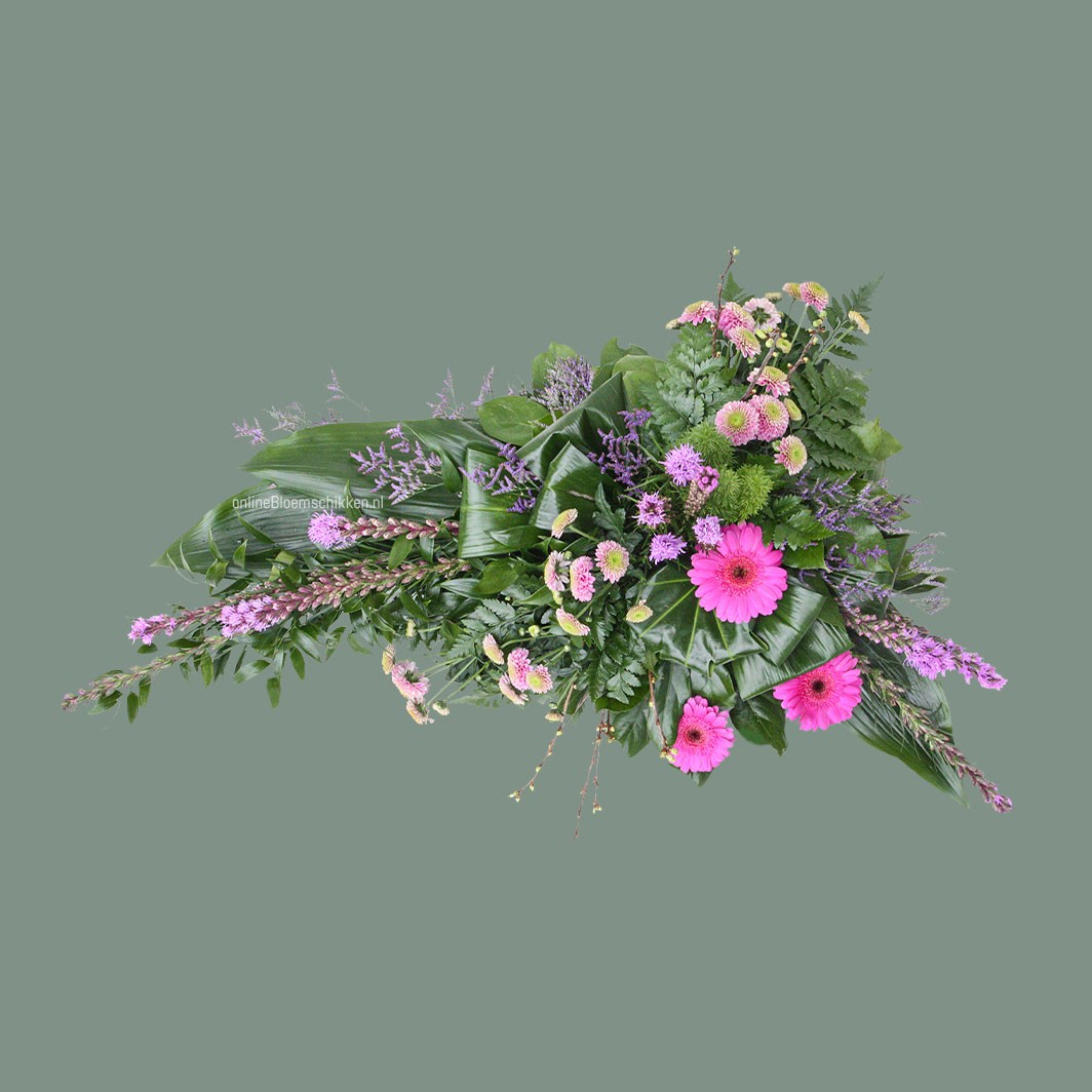 Langwerpige materialen zullen veel mooier uitkomen in lineair rouwwerk dan in gemengd rouwwerk. Wel is dit de lastigste stijl om te maken, misschien is dat wel de reden dat niet veel bloemisten deze stijl promoten.