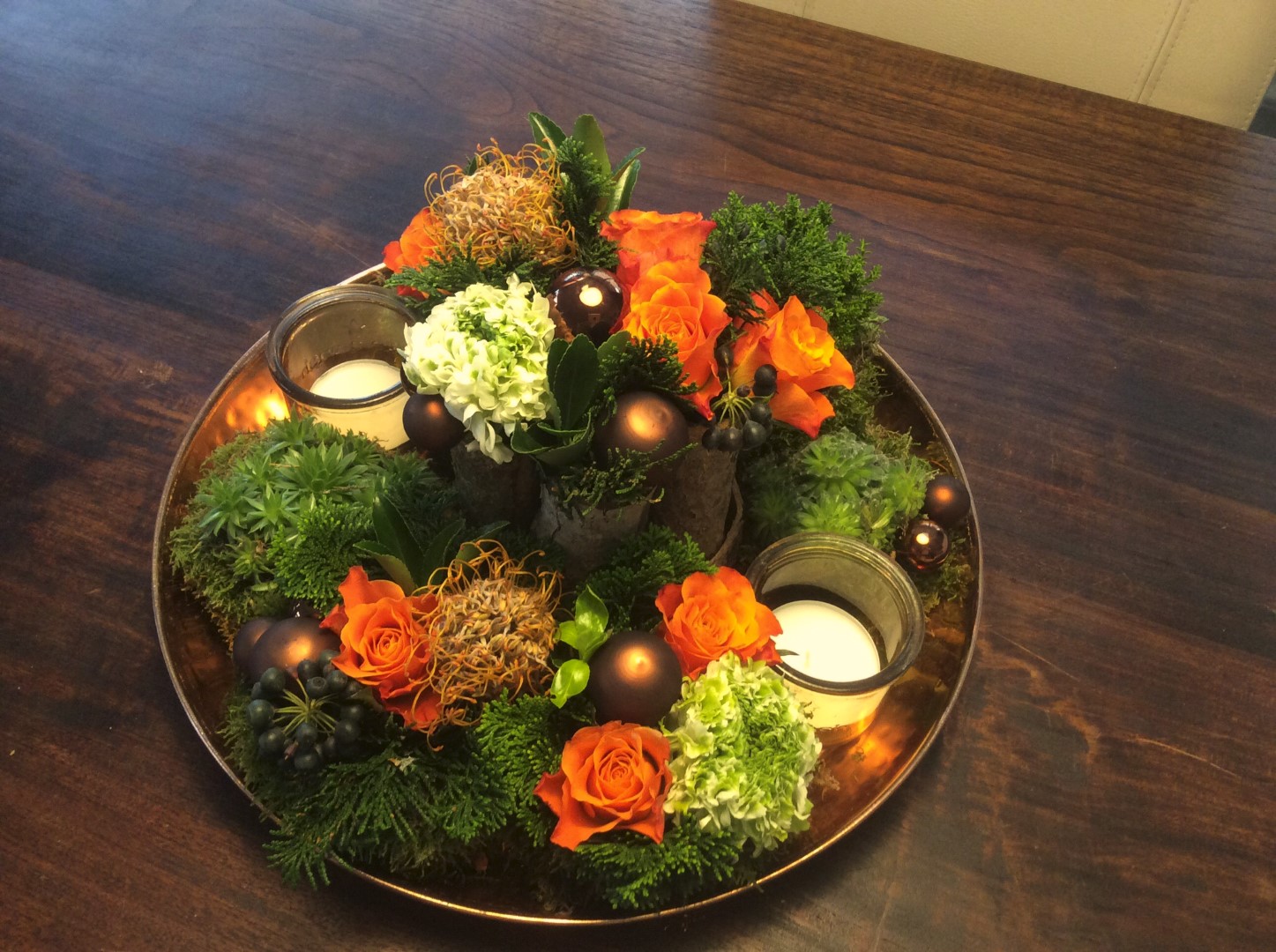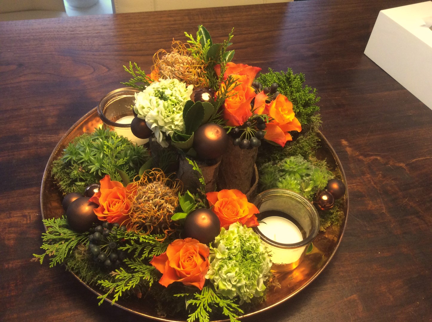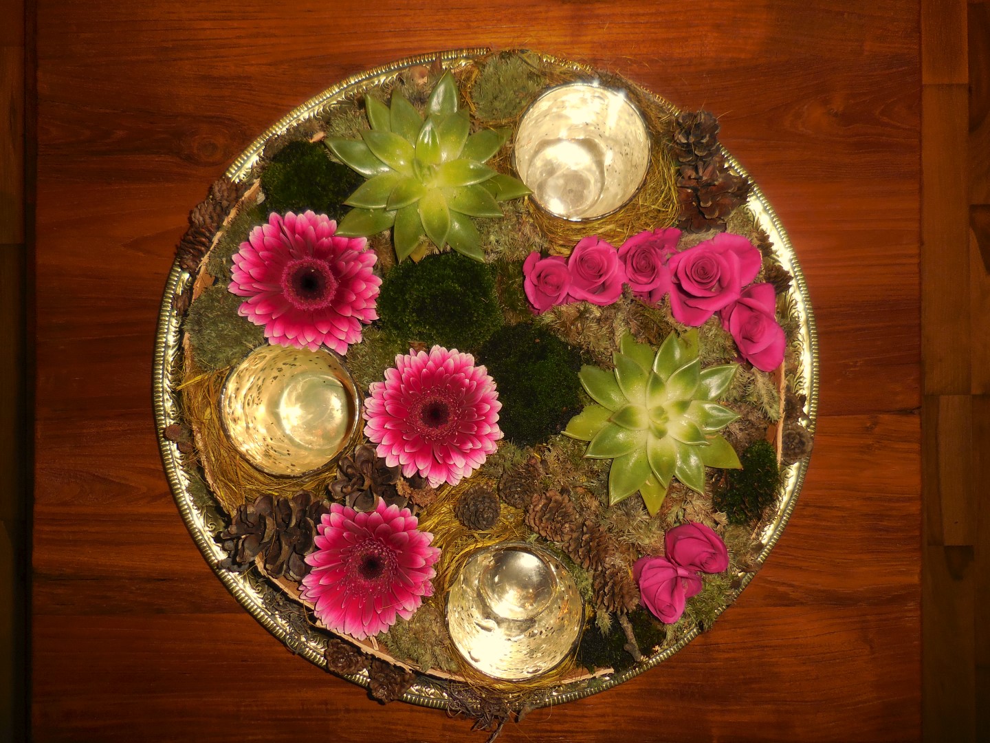 Een arrangement 'vrije stijl', dat wel erg leuk is om te maken, maar niet heel erg moeilijk. Door de verschillende structuren is het zeker ook een mooi stuk om van bovenaf te zien. Niet alleen leuk om te maken met Kerst, maar ook leuk voor de Pasen.