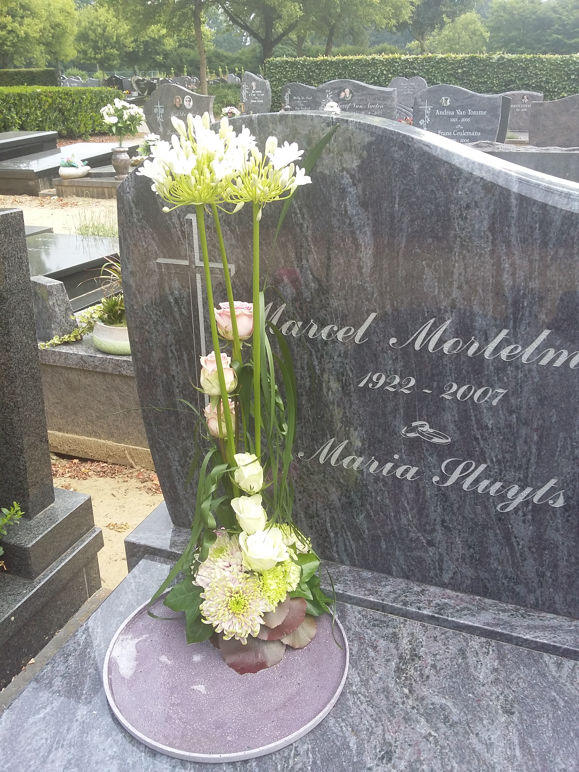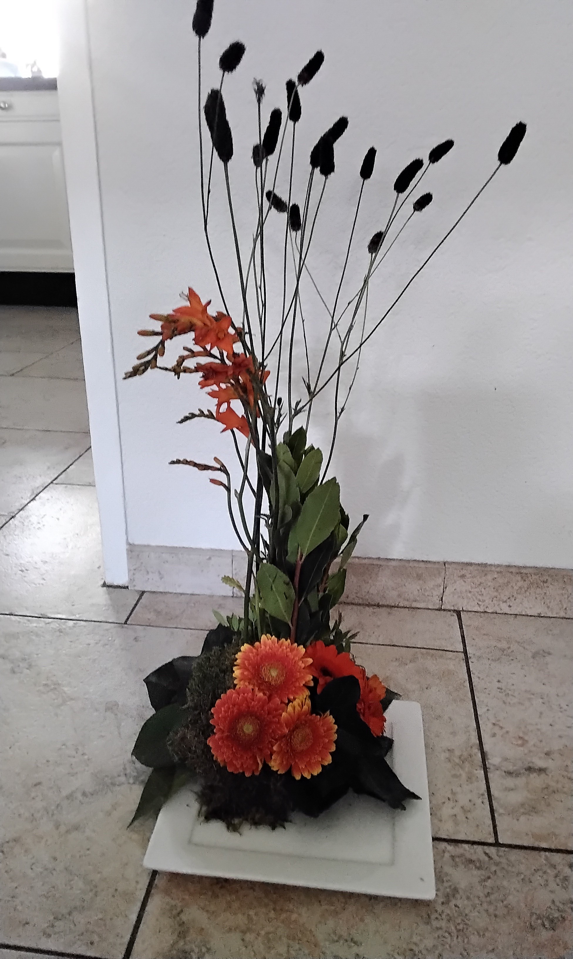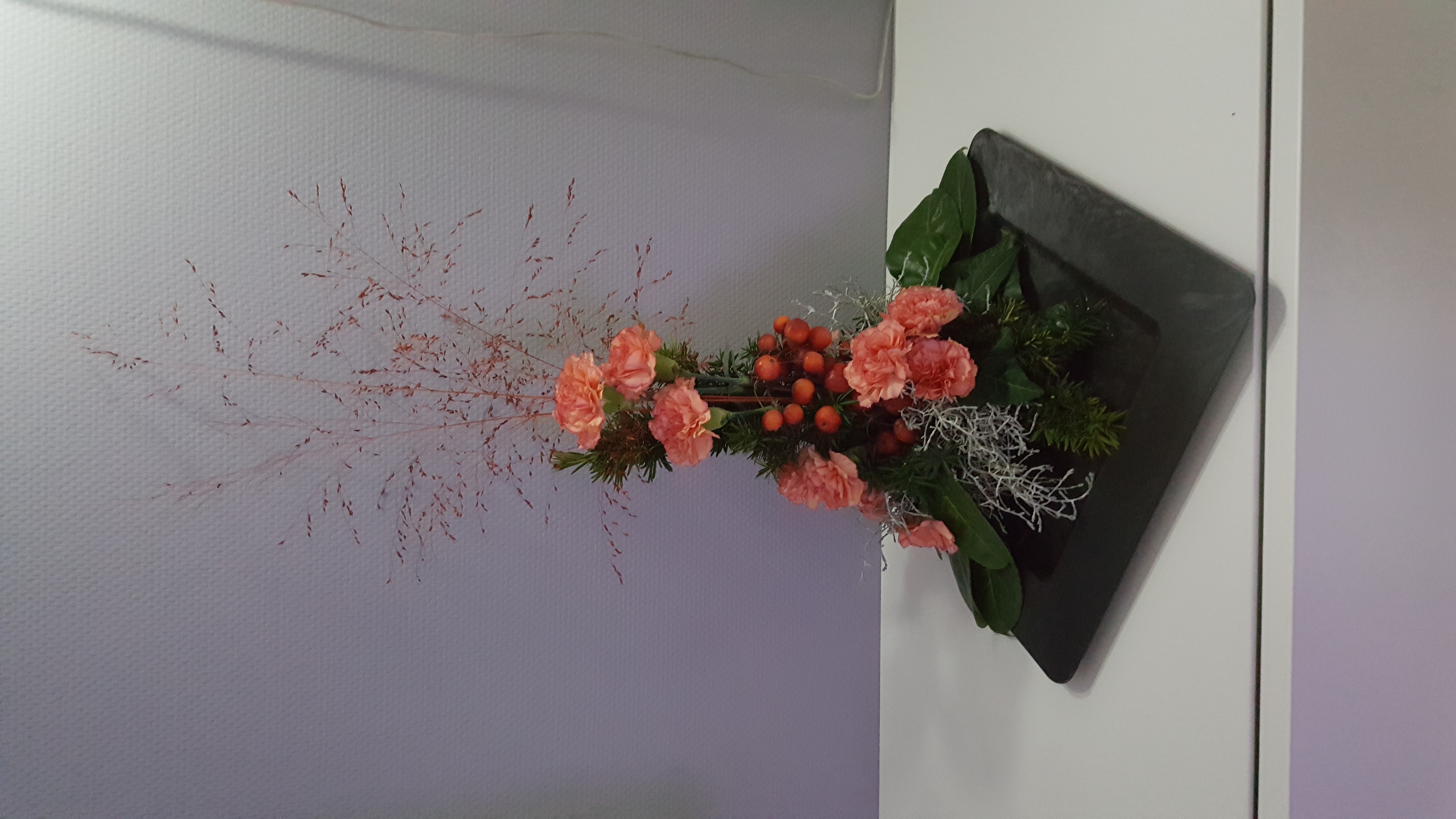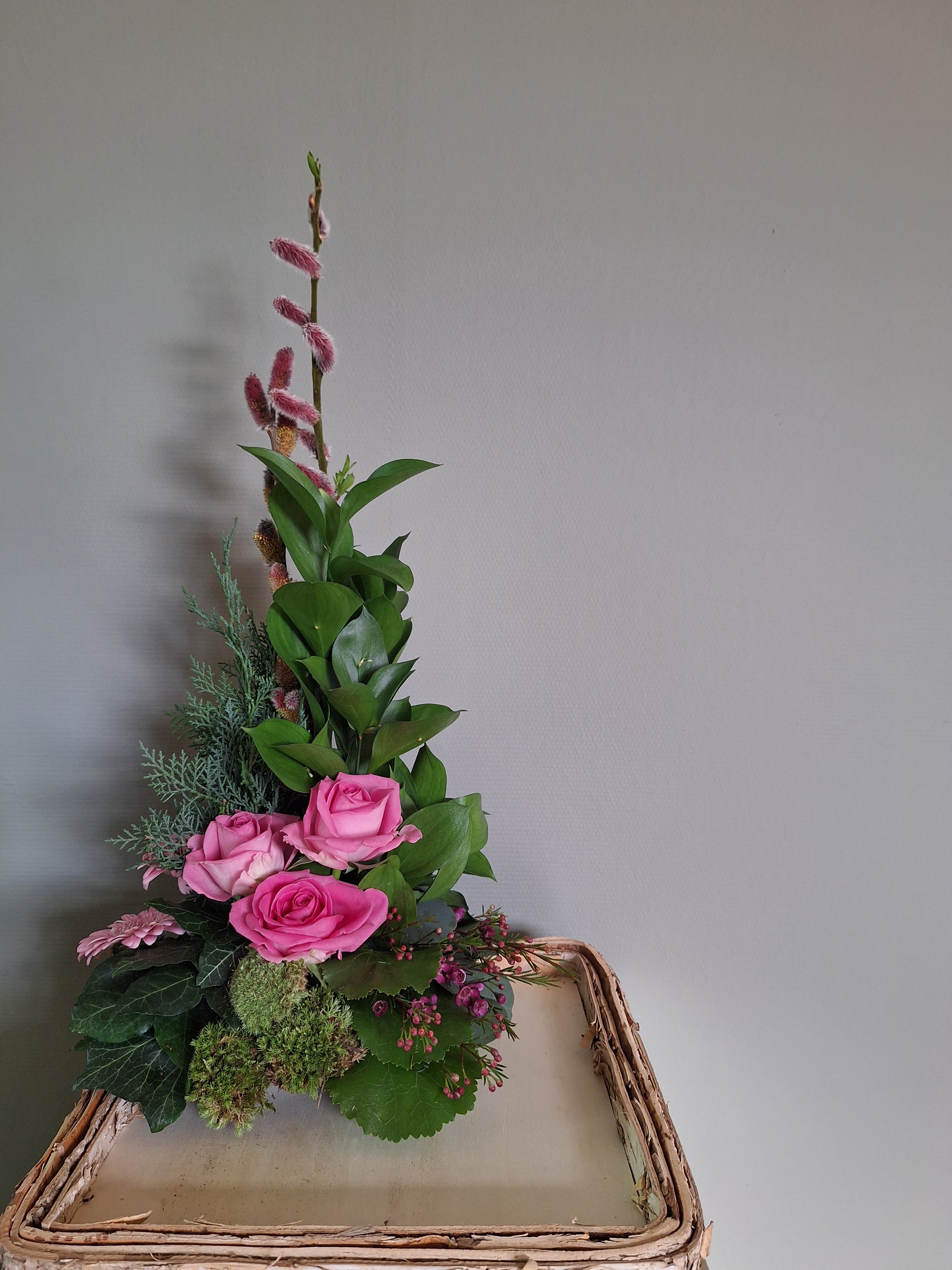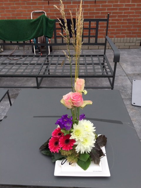 Dag Nicolle ik ben al geruime tijd de cursus online bloemschikken aan het volgen met heel veel interesse. Ik heb eerst de lessen uit de vakopleiding eens allemaal bekeken en ga nu beginnen met oefenen. Ik was van plan om de lineaire schikking op schaal eens uit te proberen als bloemstuk voor op het graf van mijn vader die vandaag 9 jaar geleden overleden is. Ik vond jammer genoeg niet de juiste materialen en heb dan meer bloemen gekocht.Ik dacht dat het zou lukken...wat niet helemaal het geval is vrees ik maar ik wilde het toch even doorsturen. Vele groetjes Kristin