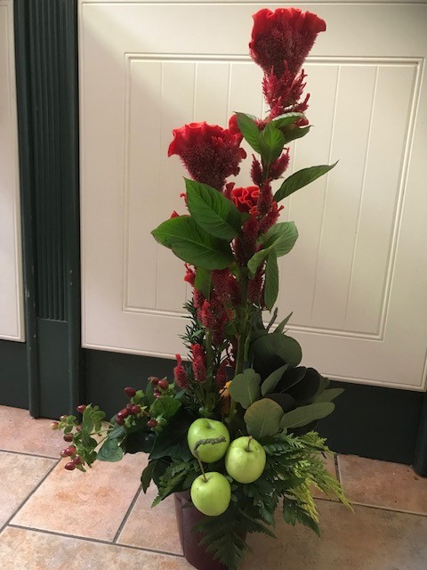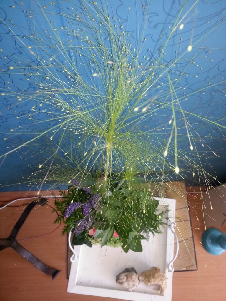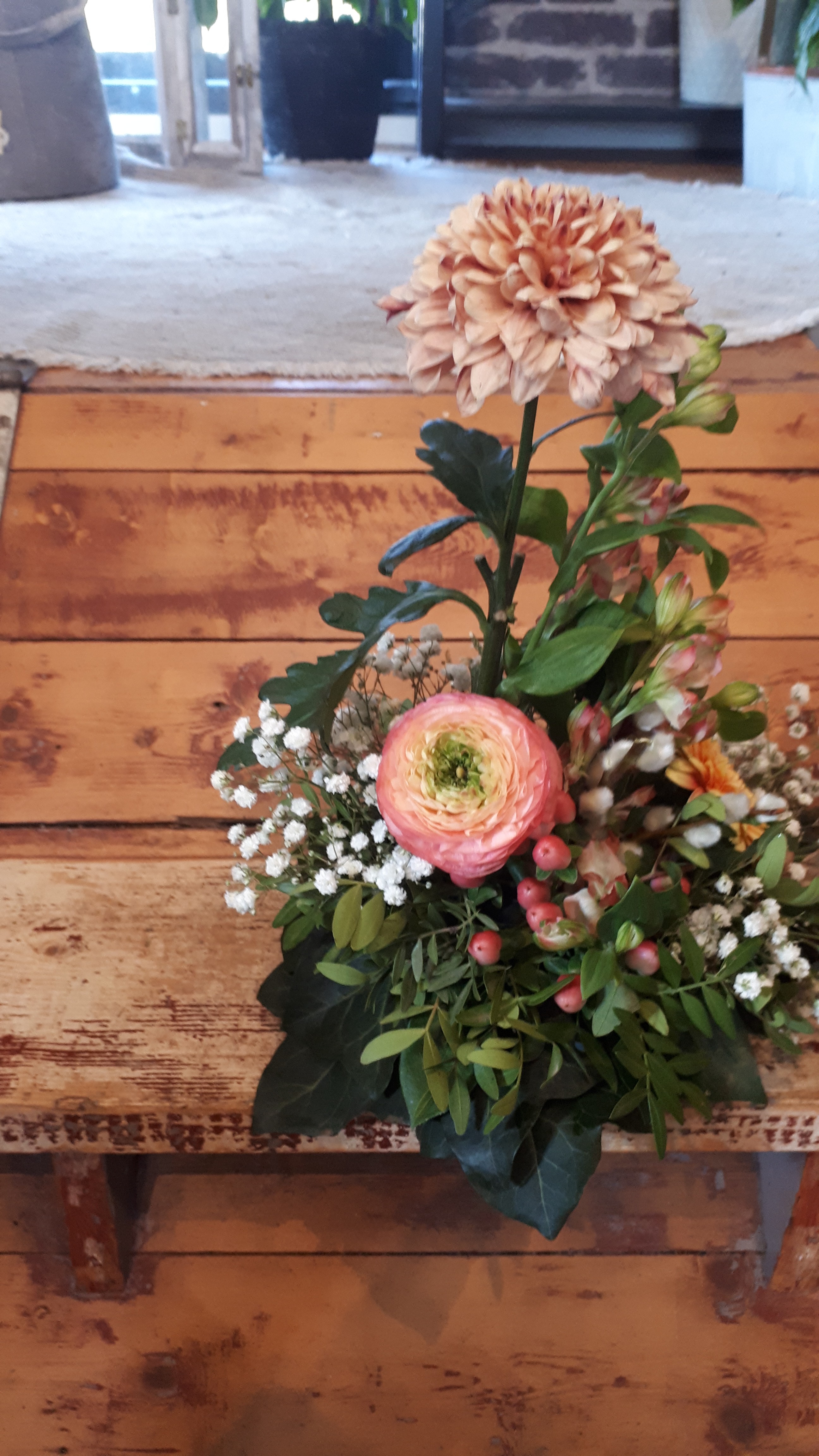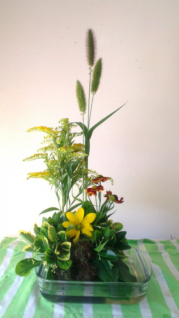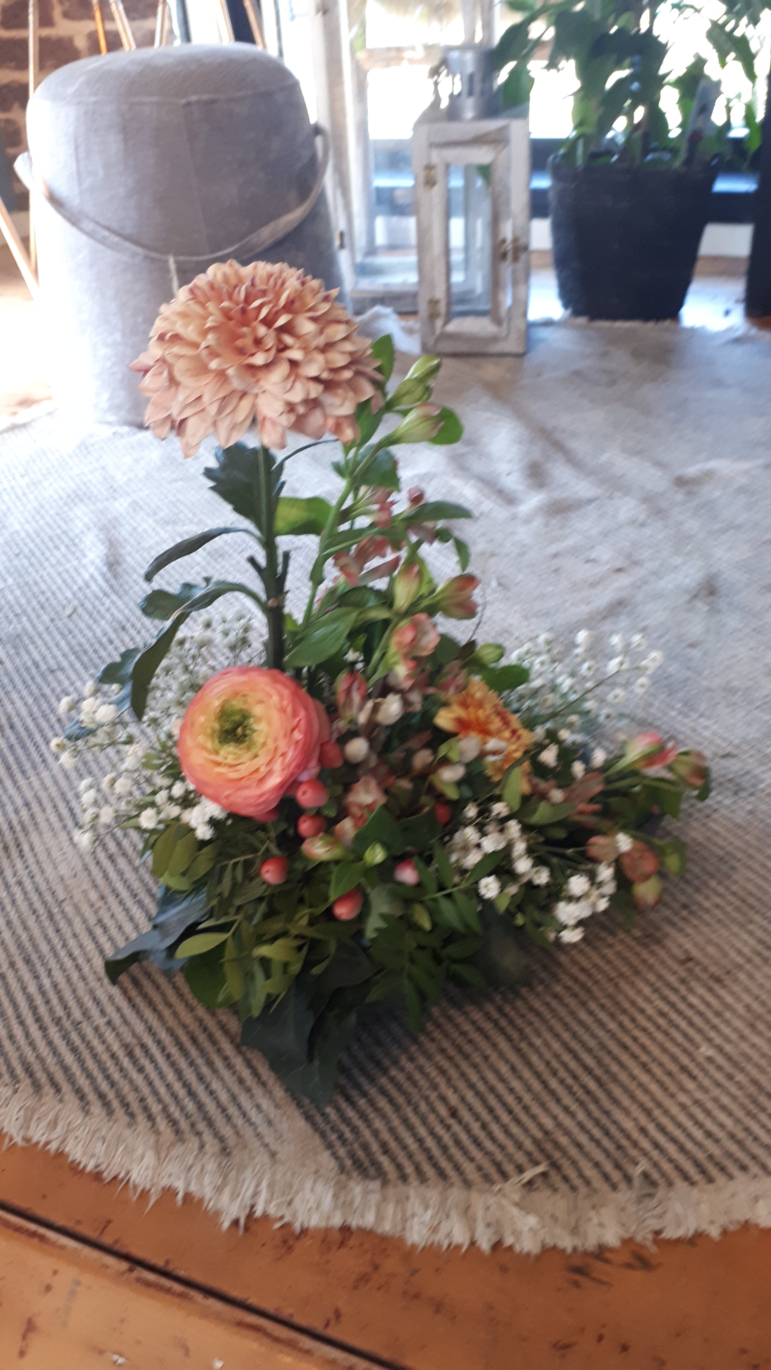 Heb dit arrangement gemaakt en ben benieuwd wat je ervan vindt. Hoop dat het een beetje klopt en hoor graag eventuele verbeteringen. Wat uit de natuur en wat uit de tuin.