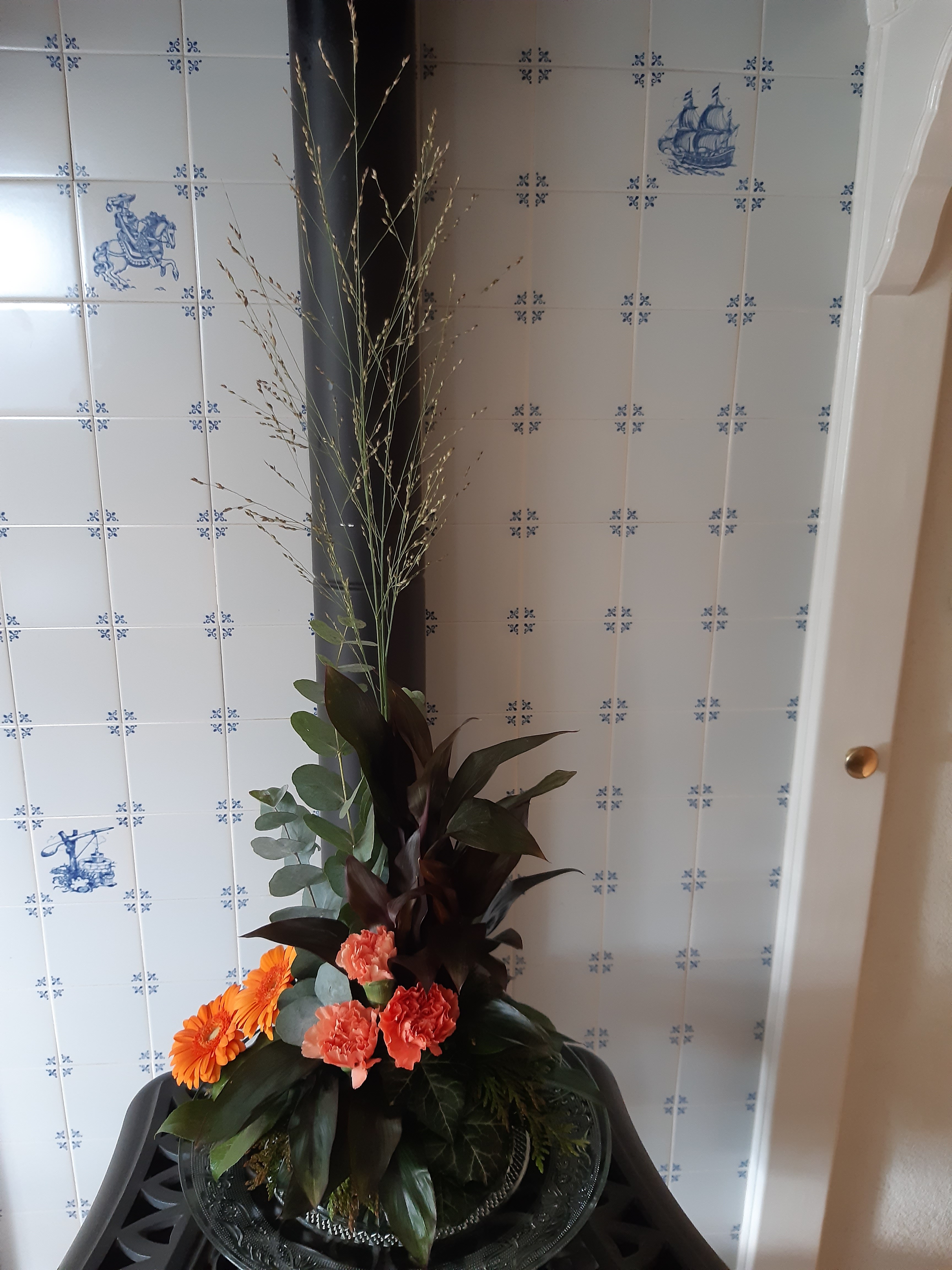 Mijn 2de creatie, op een dag. Zoals je ziet een heel ander soort bloemen dan mijn Vaas arrangement waardoor hij ook veel korter heeft gestaan. Maar des al niet te min werd ze er wel vrolijk van.