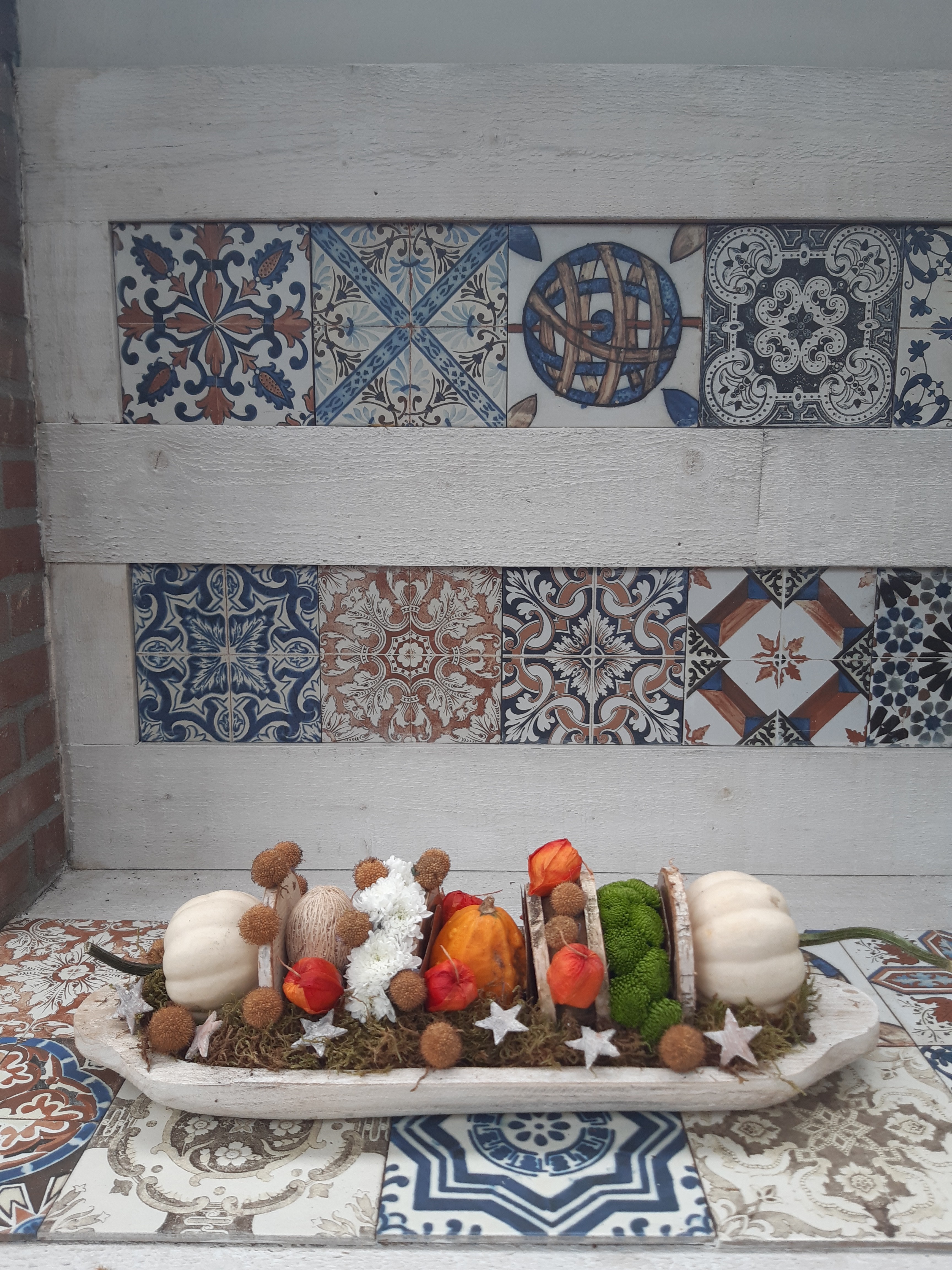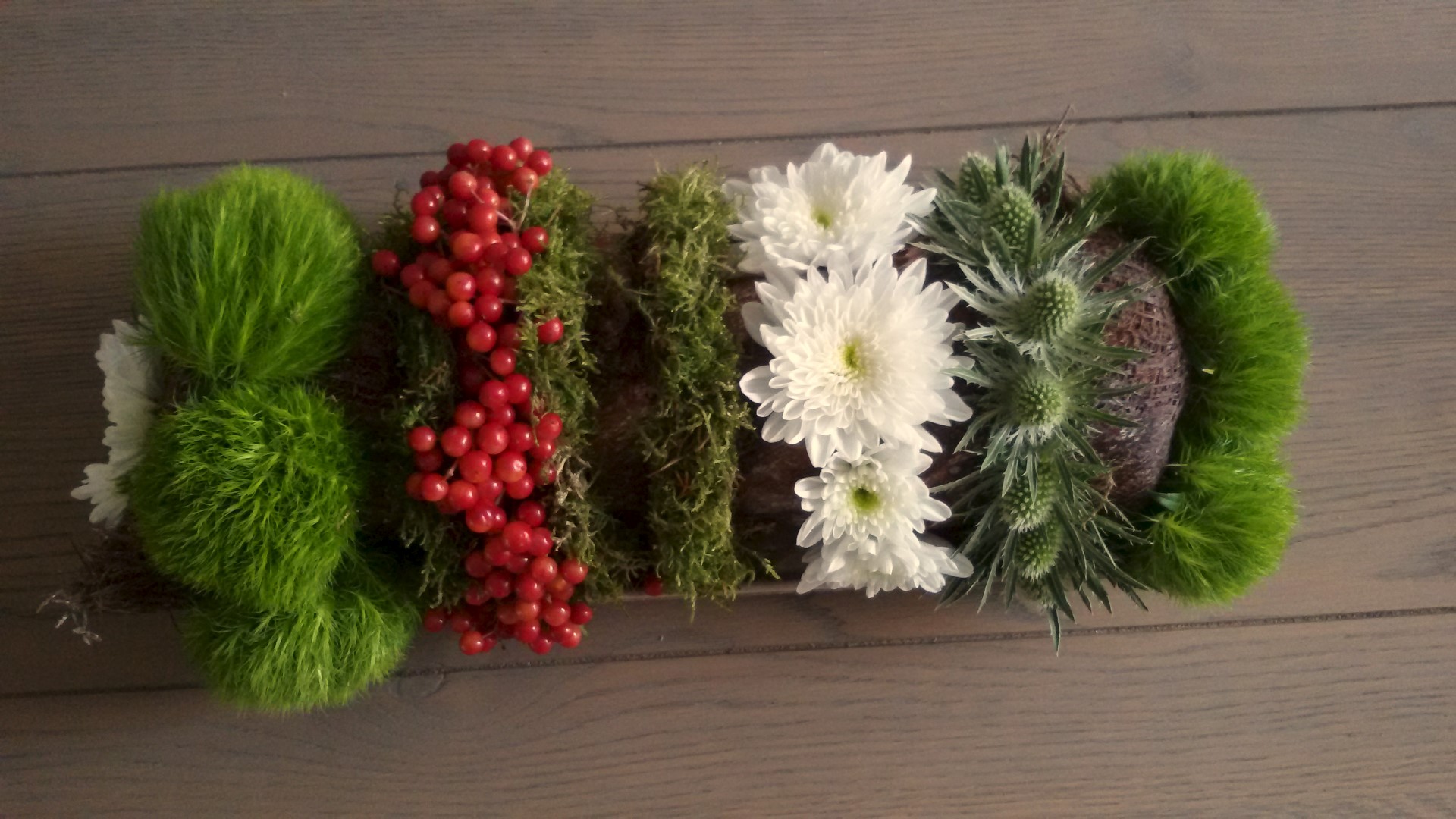 Wat een leuke rollade ;-). De kleuren zijn zo erg mooi bij elkaar. Ik vind dat je een creatieve oplossing hebt gevonden voor je techniek. Meestal hebben ze bij een tuincentrum wel tonkinstokken, want die worden gebruikt om planten te ondersteunen. Je hebt in ieder geval weer een mooi stuk op tafel en er van geleerd. Ik zie aan je lessen die je tot nu toe hebt gedaan, dat je lessen eruit pikt die je leuk vindt. Misschien vindt je de Ajourkrans wel leuk om volgende keer te maken. Daar zijn nu ook zo veel mooie herfstmaterialen die je ervoor kan gebruiken. Nog één les en je hebt recht op je certificaat, maar nu ben je vast niet meer te stoppen. Heel veel plezier met je volgende les.