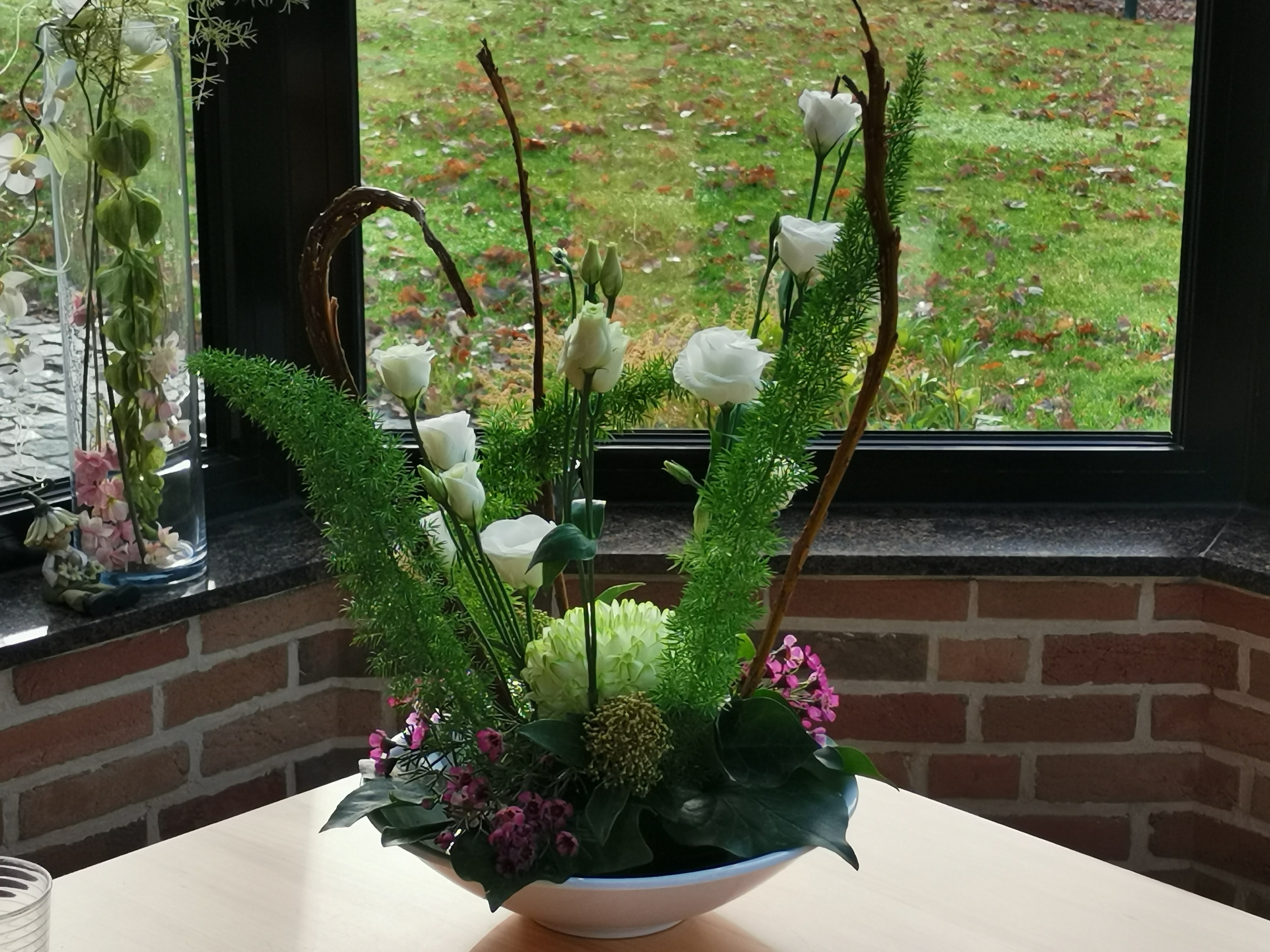 Hoi Nicolle, Mooi arrangement! Zelf ook nog maar eens lineair schaalarrangement sierlijk geprobeerd te maken in combinatie met vlechtwerk van typhagras. Groetjes Ine