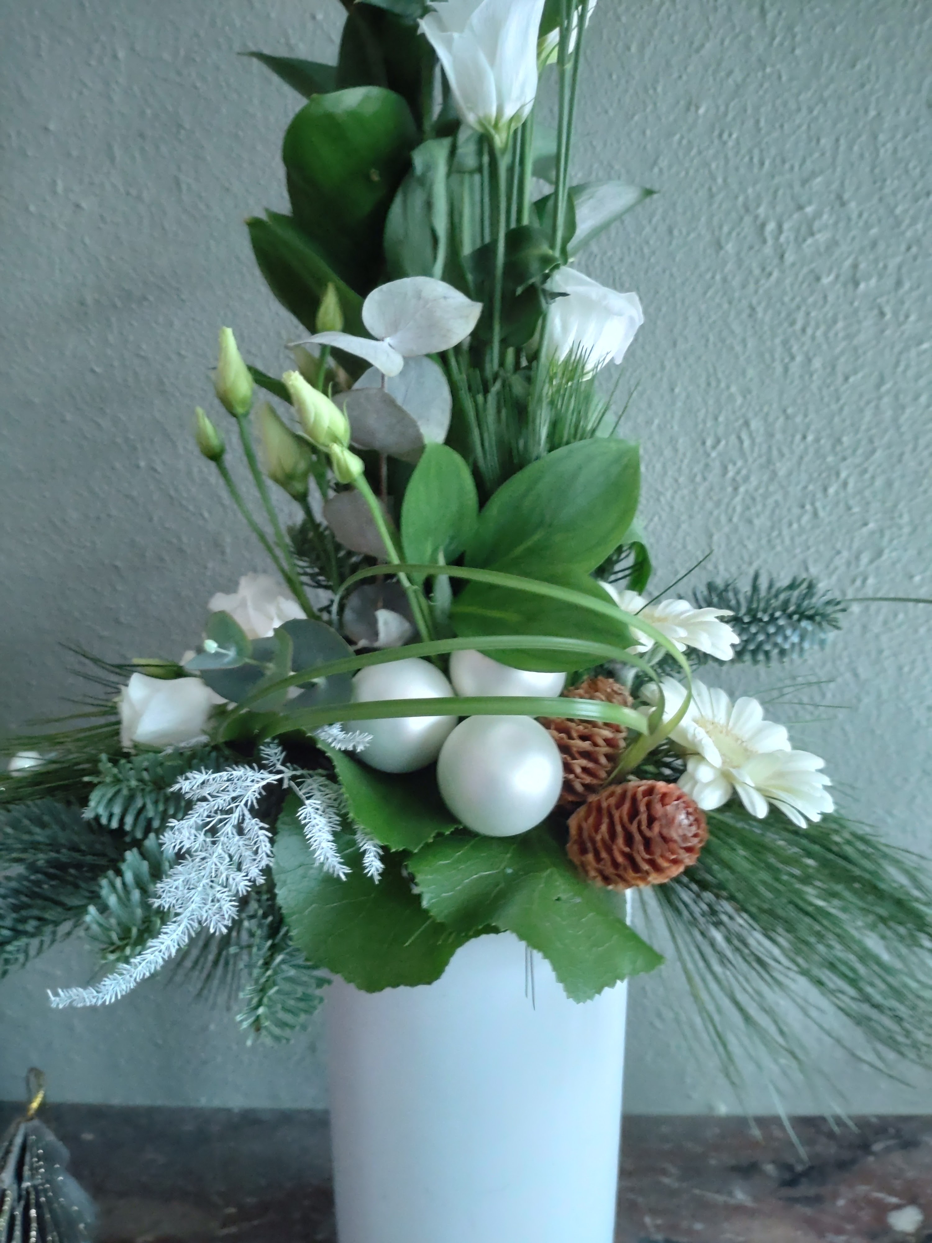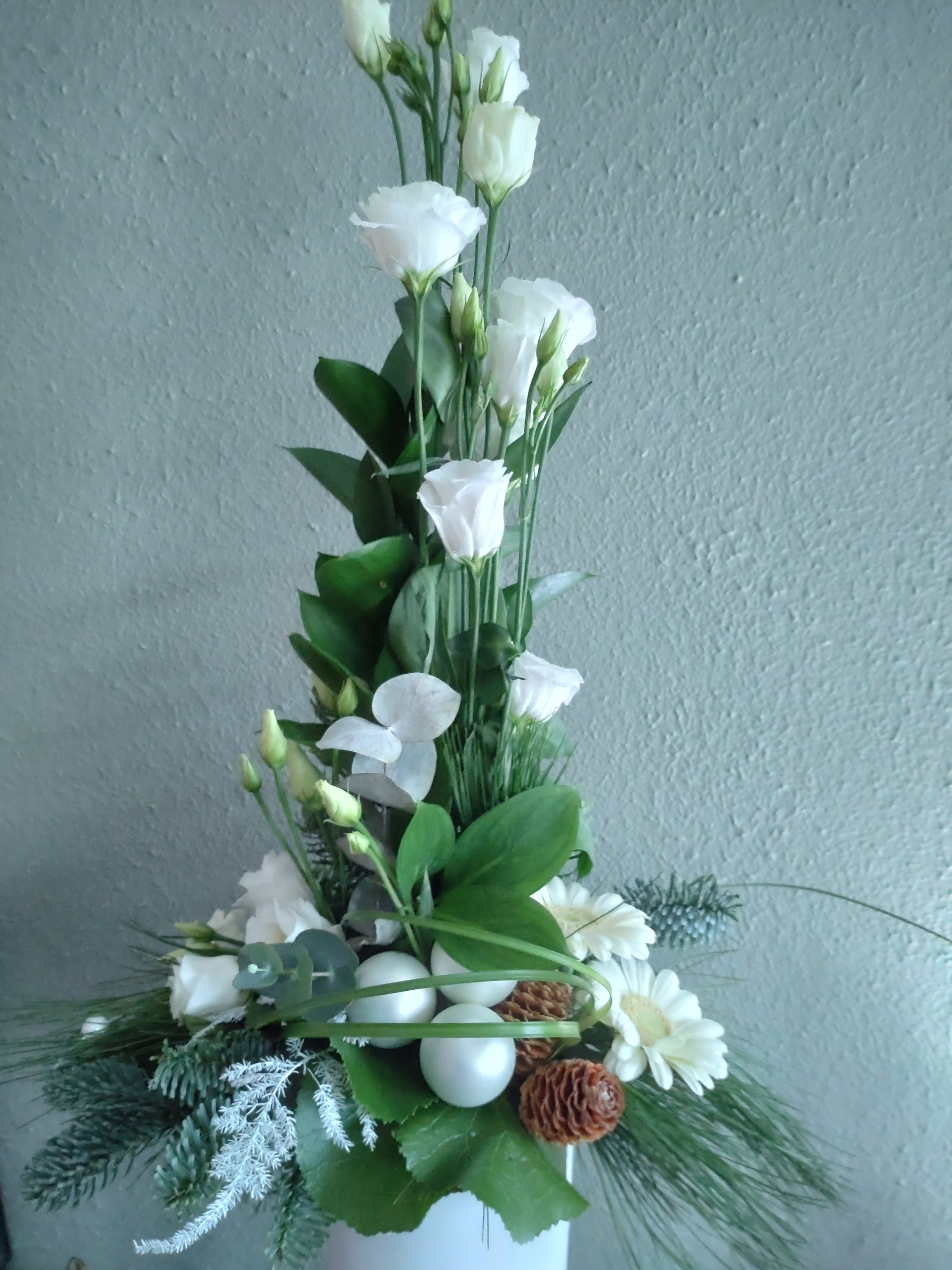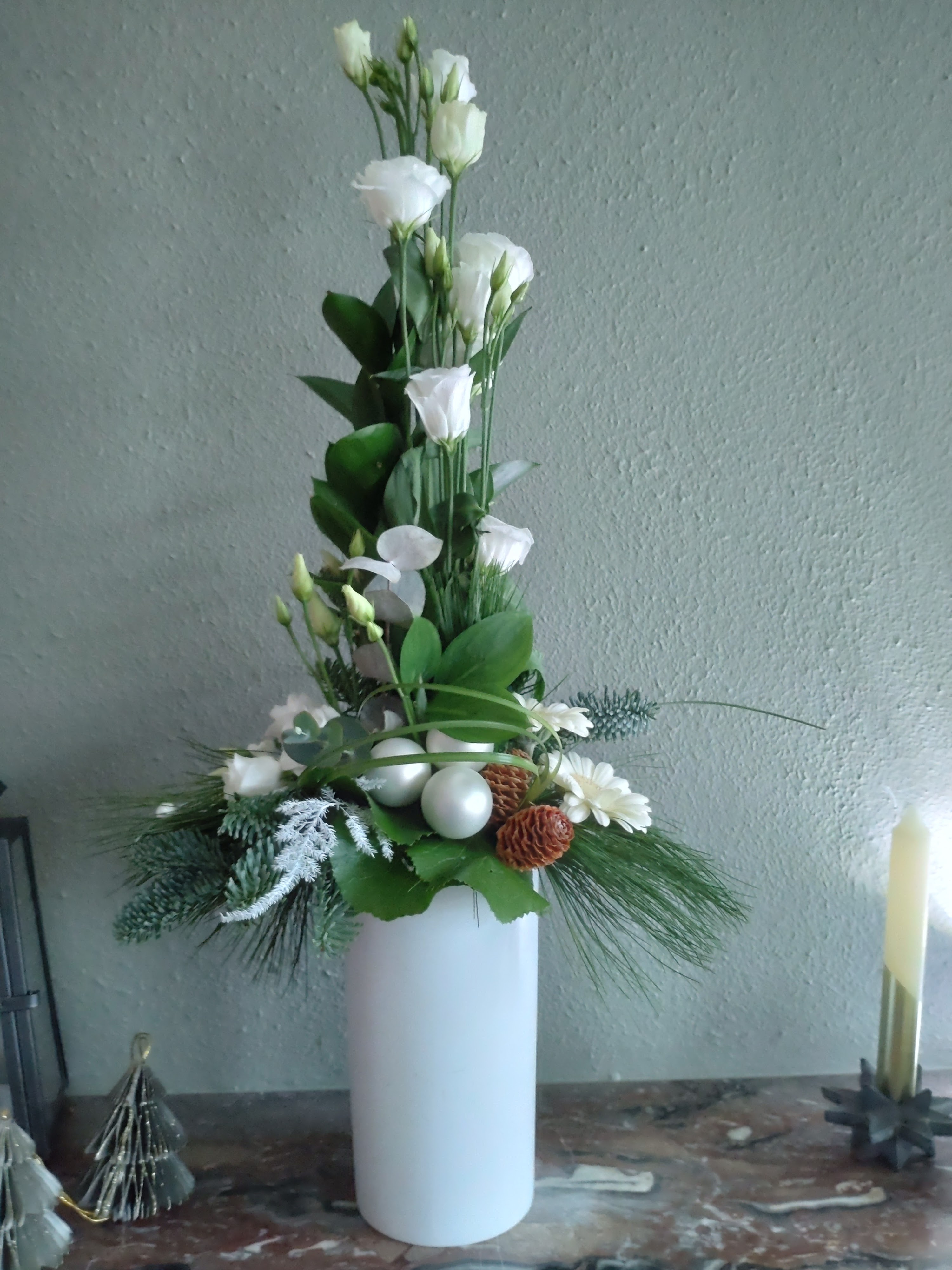 Alvast een vaasarrangement gemaakt voor de kerst met restjes bloemen die ik over had