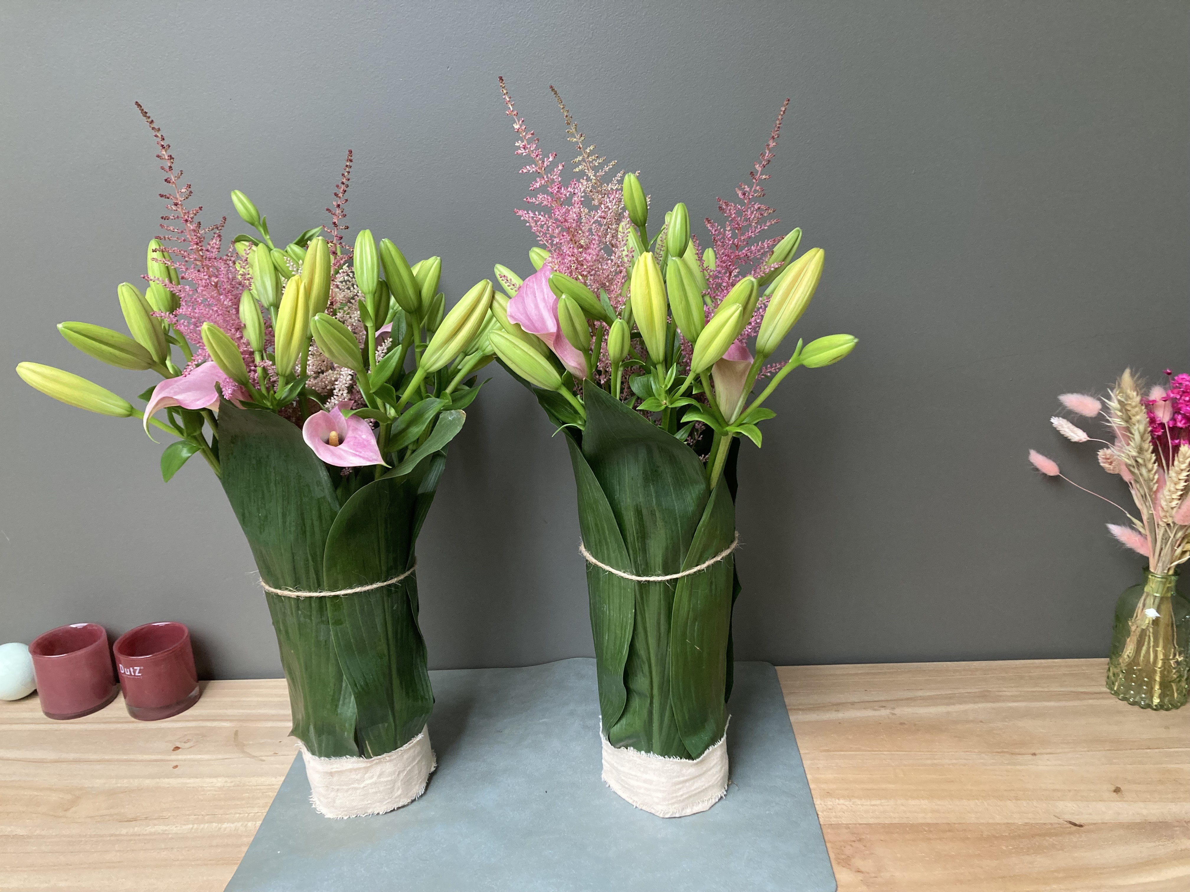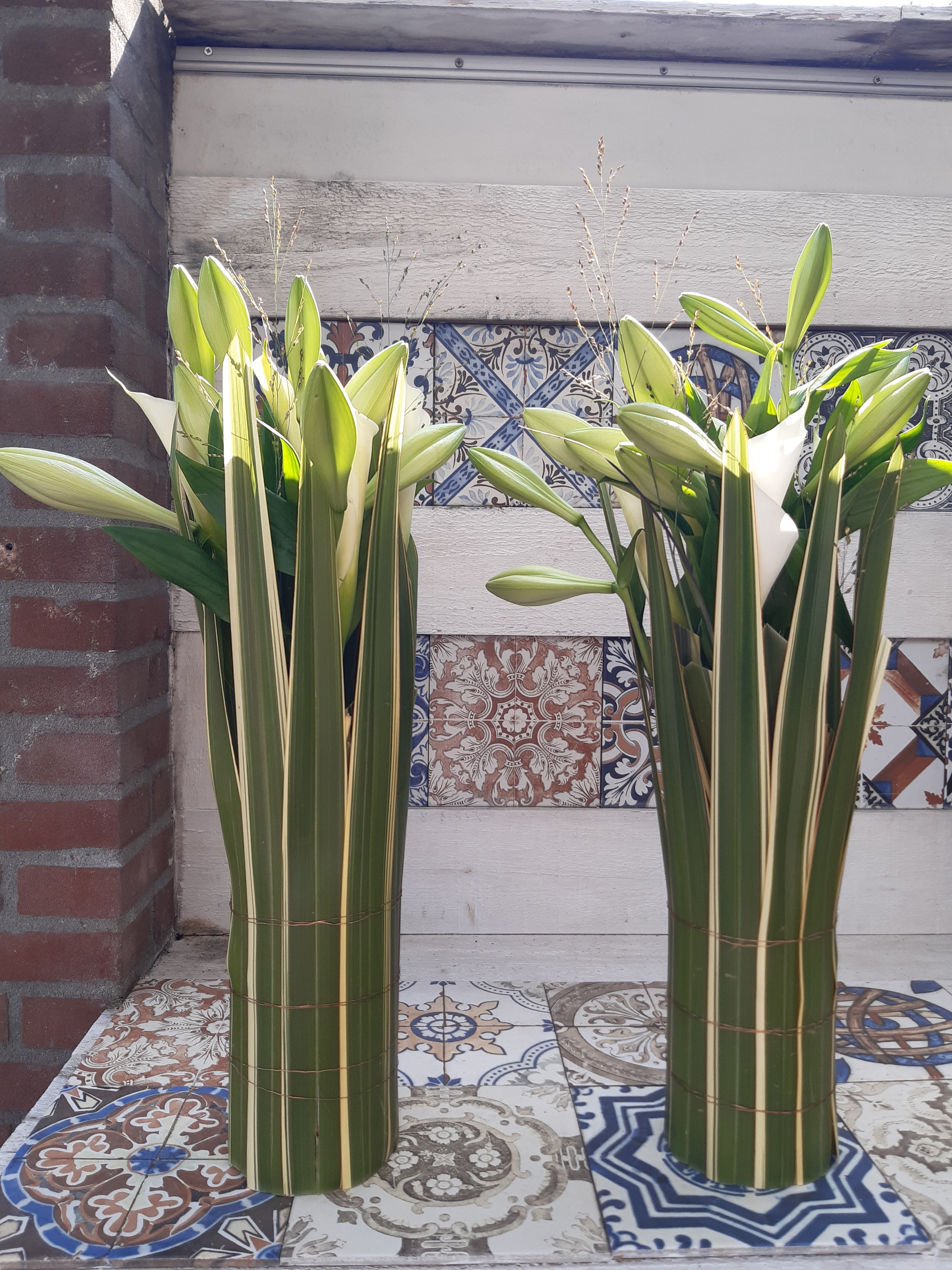 Met deze vazen hebben we een heleboel complimenten en nieuwsgierige blikken gekregen, omdat je de gebruikte techniek vanaf de buitenkant niet kan zien. Eén ding kunnen we alvast verklappen: je moet wel wat ervaring hebben met het maken van boeketten.
