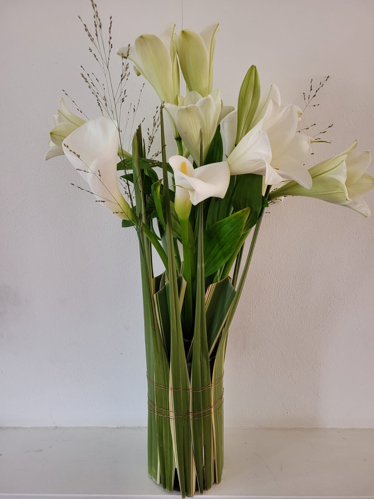 Het Phormium blad is het hele jaar verkrijgbaar, maar is ook makkelijk te vervangen door ander blad.