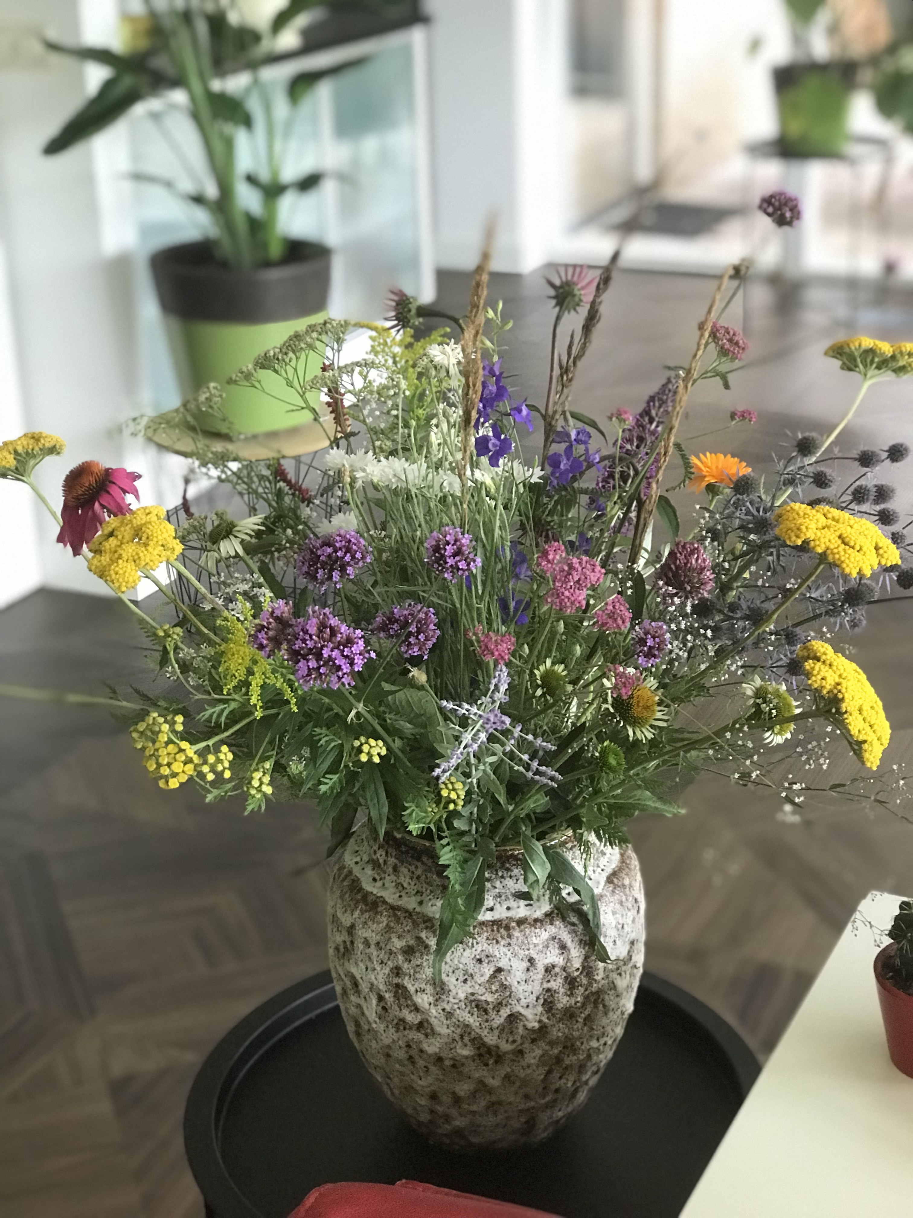 Hoi Nicolle, Wat vind je van dit zelfgeplukte veldboeket? Ik werd er in ieder geval helemaal blij van. En vooral omdat ik de korenschoof-techniek inmiddels goed beheers, dankzij jouw geweldige lessen en mijn geduldige oefenen.... Grtjs Vlijtig liesje