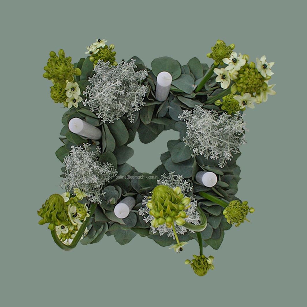Je ziet tegen de tijd van Advent overal heel veel ronde kransen met vier kaarsen voorbijkomen. Dit is een leuk alternatief. Doordat je vier kaarsen gebruikt valt het nog meer op dat de krans vierkant is. Ook leggen we tijdens deze les het gebruik van kaarsen in bloemwerk uit. We kunnen je al verklappen dat deze kaarsen keurig zijn opgebrand zonder dat er andere materialen zijn gaan branden.