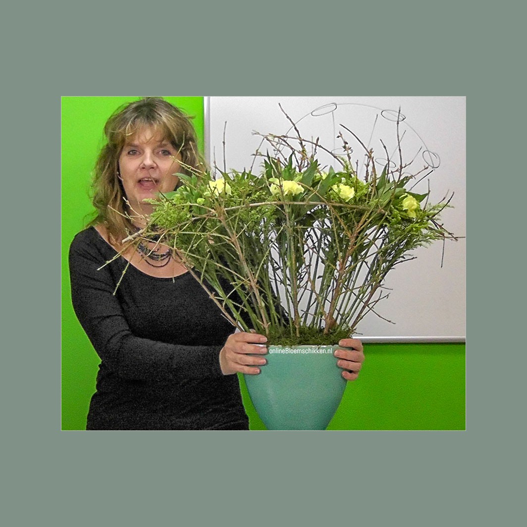 Hoi Rita, Je bent nog lekker bezig! Mooi om te zien hoe je nog verder aan het ontwikkelen bent. Met deze vaas en materialen toont het arrangement ook meteen een stuk moderner. Ik vind hem prachtig, je vriendin vast en zeker ook. Groetjes, Nicolle